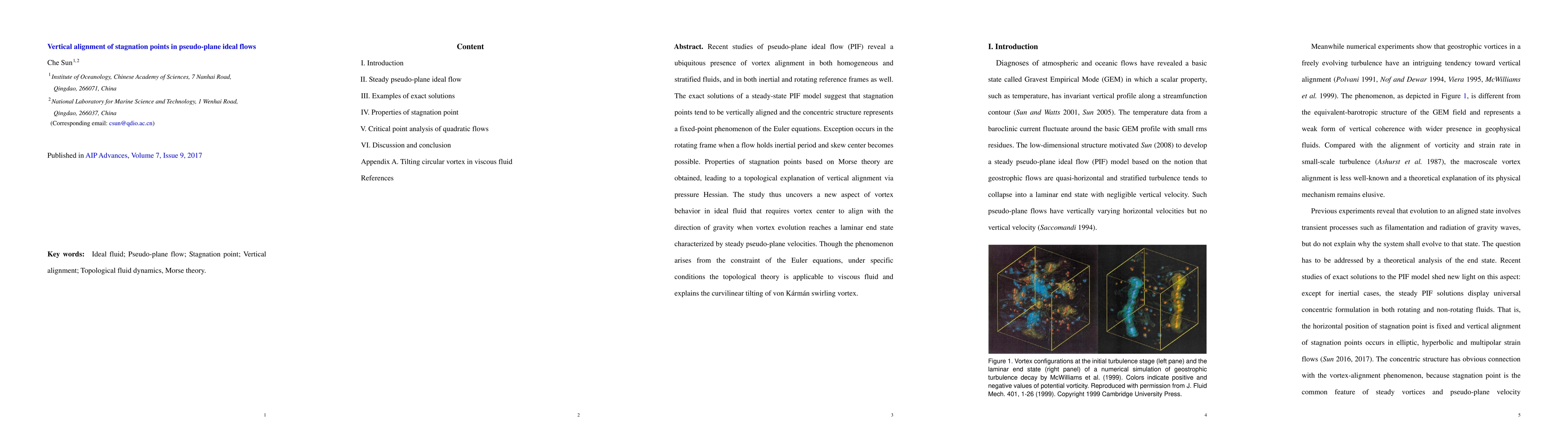 This paper investigates the vertical alignment of stagnation points in pseudo-plane ideal flows, revealing that these points tend to align vertically due to the fixed-point phenomenon of the Euler equations. The study also explores how this alignment can be explained topologically via pressure Hessian, with implications extending to viscous fluids under specific conditions.