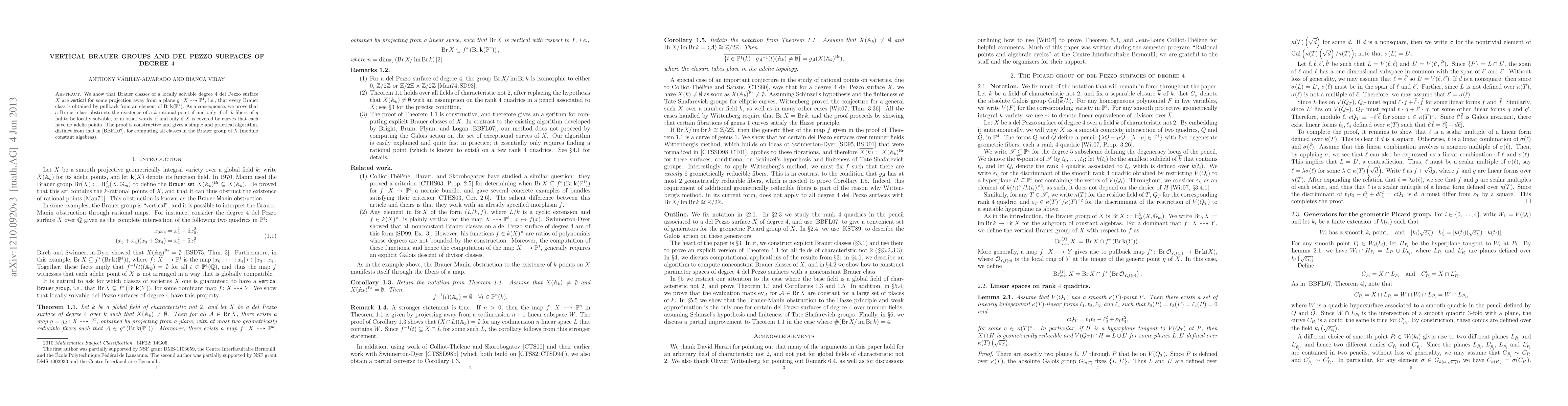 Researchers show that Brauer classes of degree 4 del Pezzo surfaces can be linked to elements in the Brauer group of P^1, allowing for a new algorithm to compute Brauer groups.
