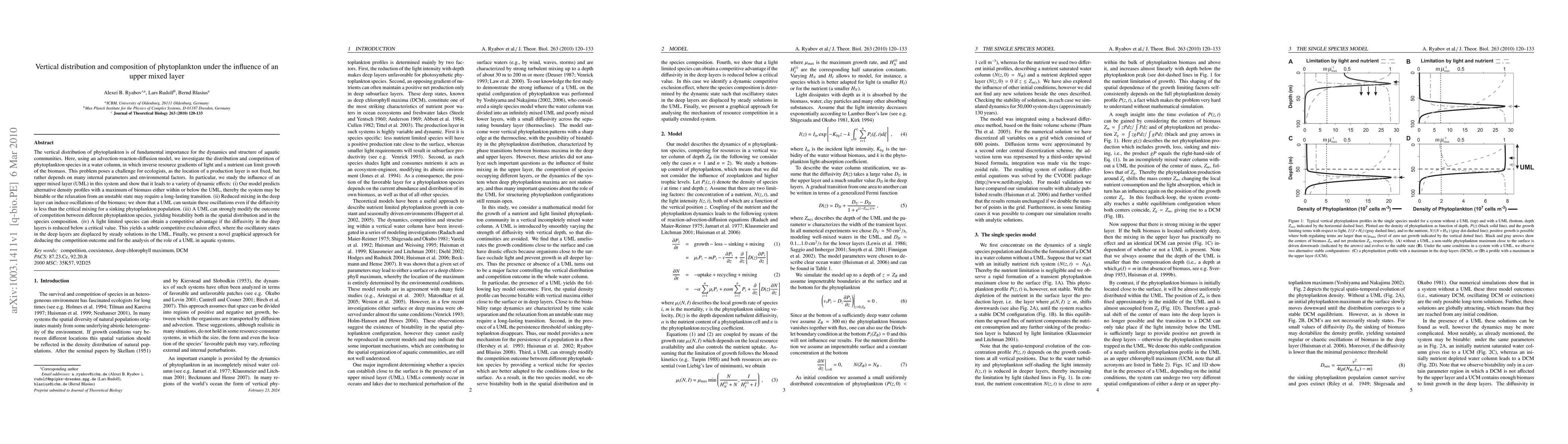 Researchers studied how an upper mixed layer affects phytoplankton distribution and competition in aquatic systems, revealing complex dynamics including bistability, oscillations, and competitive exclusion effects.