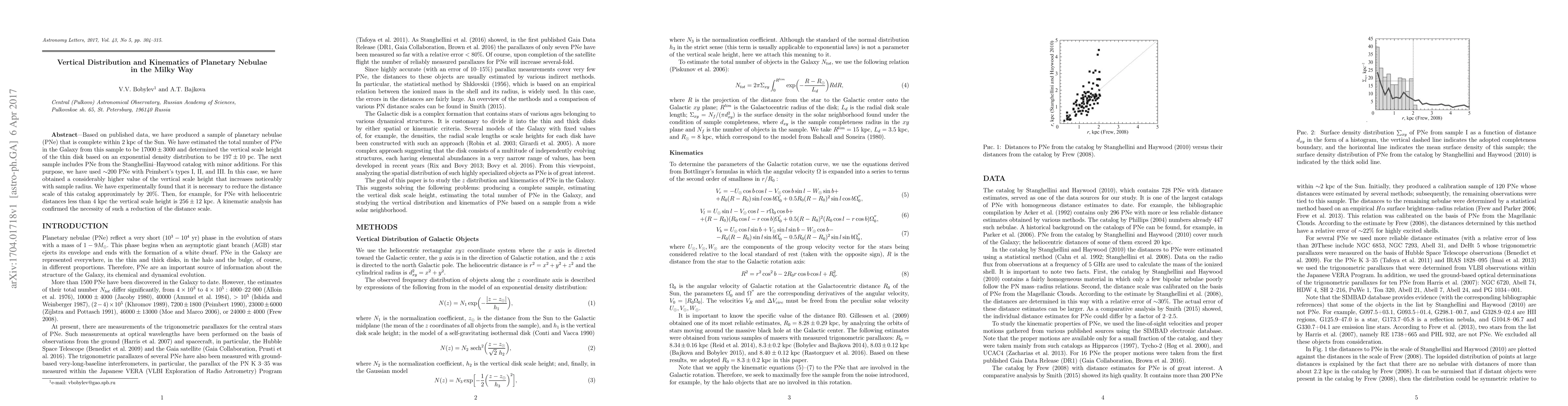 Based on published data, we have produced a sample of planetary nebulae (PNe) that is complete within 2 kpc of the Sun. We have estimated the total number of PNe in the Galaxy from this sample to be 17000+/-3000 and determined the vertical scale height of the thin disk based on an exponential density distribution to be 197+/-10 pc. The next sample includes PNe from the Stanghellini-Haywood catalog with minor additions. For this purpose, we have used about 200 PNe with Peimbert's types I, II, and III. In this case, we have obtained a considerably higher value of the vertical scale height that increases noticeably with sample radius. We have experimentally found that it is necessary to reduce the distance scale of this catalog approximately by 20%. Then, for example, for PNe with heliocentric distances less than 4 kpc the vertical scale height is 256+/-12 kpc. A kinematic analysis has confirmed the necessity of such a reduction of the distance scale.
