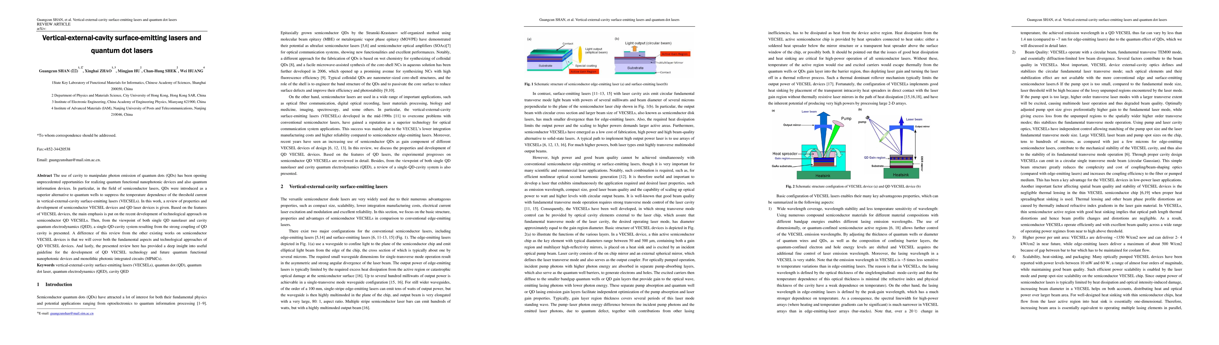 This paper reviews the properties and advancements in vertical-external-cavity surface-emitting lasers (VECSELs) and quantum dot (QD) lasers, emphasizing the technological approaches for semiconductor QD VECSELs. It provides insights into the fundamental aspects and future directions for QD VECSEL technology and quantum functional nanophotonic devices.