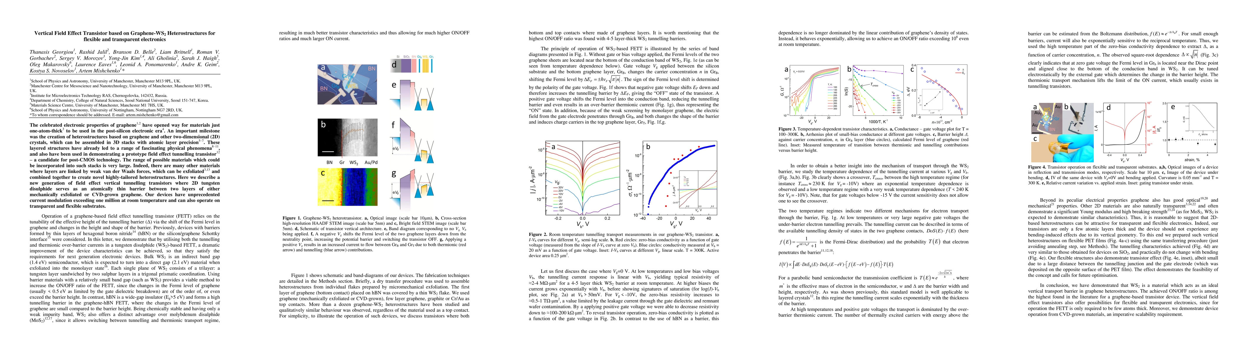 This paper presents a novel vertical field effect transistor based on graphene-WS2 heterostructures, showcasing unprecedented current modulation exceeding one million at room temperature. The devices are suitable for flexible and transparent electronics, marking a significant step towards post-silicon technology.