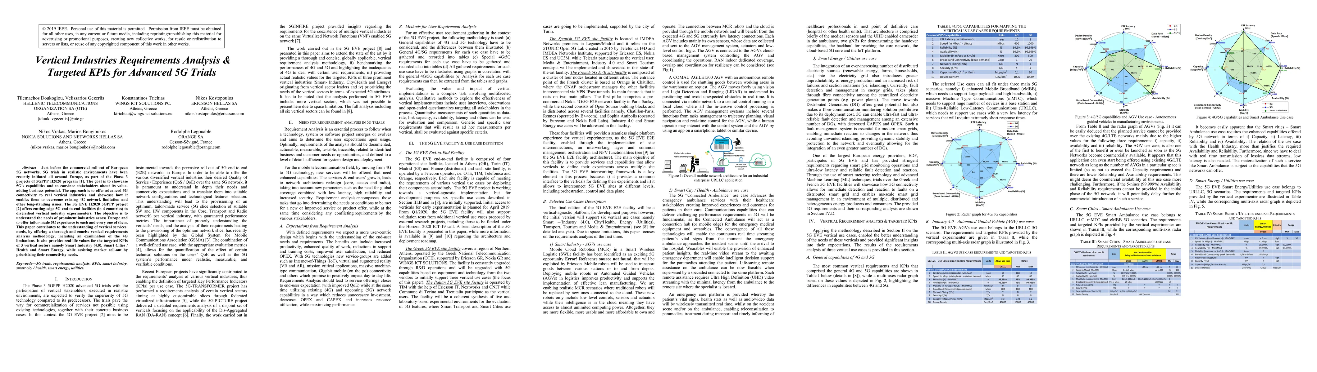 This paper analyzes the requirements of prominent European vertical industries for advanced 5G trials, offering a methodology to understand their needs and examining 4G limitations. It also provides targeted KPIs for Smart Industry, Smart Cities/Health, and Smart Energy sectors to assist in market roll out.