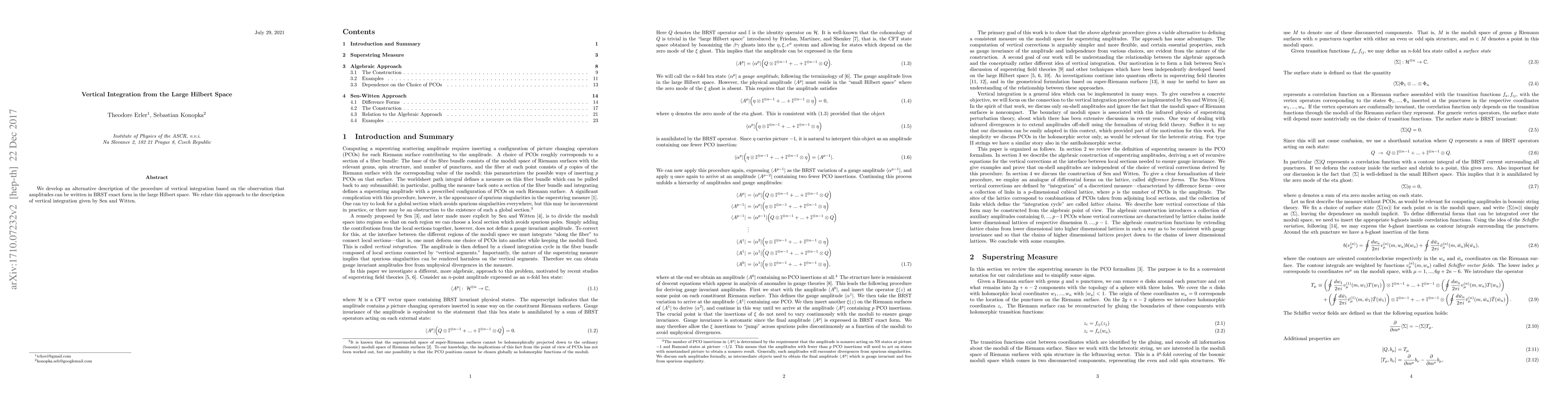 We develop an alternative description of the procedure of vertical integration based on the observation that amplitudes can be written in BRST exact form in the large Hilbert space. We relate this approach to the description of vertical integration given by Sen and Witten.
