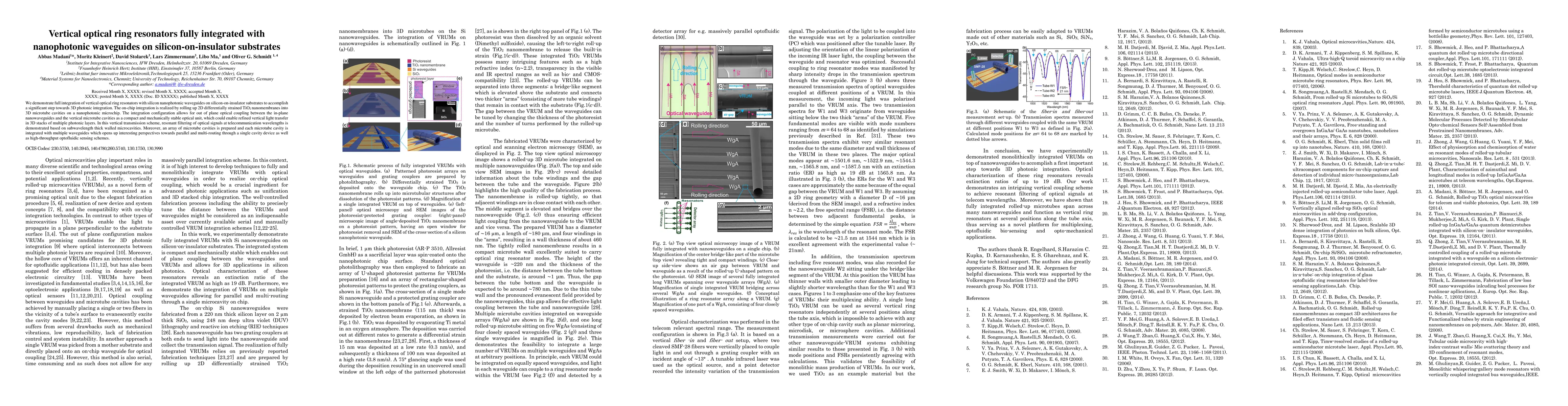 This paper presents the full integration of vertical optical ring resonators with silicon nanophotonic waveguides on silicon-on-insulator substrates, achieving 3D photonic integration through rolled-up TiO2 nanomembranes. The configuration enables efficient vertical light transfer and demonstrates resonant filtering of optical signals, with potential for parallel routing and high-throughput optofluidic sensing.