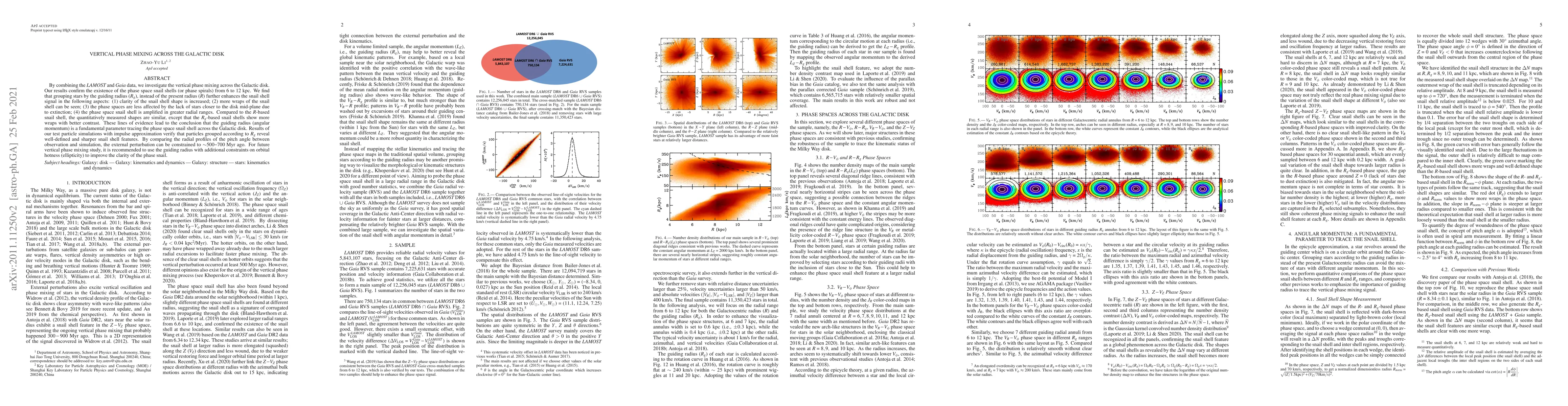 This study combines {\it LAMOST} and {\it Gaia} data to investigate vertical phase mixing in the Galactic disk, revealing phase space snail shells from 6 to 12 kpc. Grouping stars by guiding radius ($R_{g}$) instead of present radius ($R$) enhances the snail shell signal, showing clearer shapes, more wraps, and better contrast, suggesting $R_{g}$ as a fundamental parameter.
