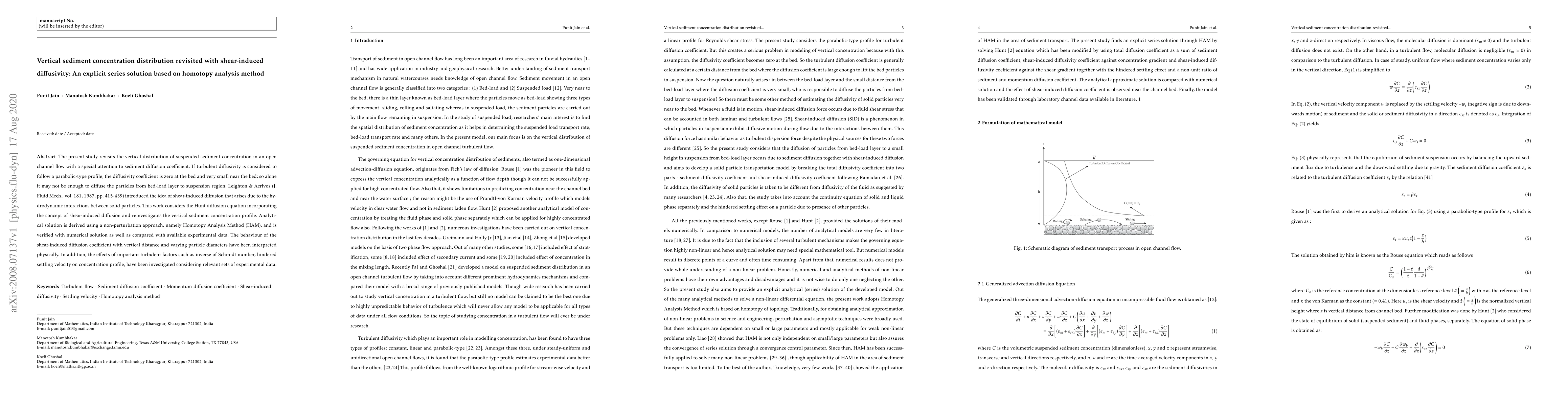 The present study revisits the vertical distribution of suspended sediment concentration in an open channel flow with a special attention to sediment diffusion coefficient. If turbulent diffusivity is considered to follow a parabolic-type profile, the diffusivity coefficient is zero at the bed and very small near the bed; so alone it may not be enough to diffuse the particles from bed-load layer to suspension region. Leighton & Acrivos (J. Fluid Mech., vol. 181, 1987, pp. 415-439) introduced the idea of shear-induced diffusion that arises due to the hydrodynamic interactions between solid particles. This work considers the Hunt diffusion equation incorporating the concept of shear-induced diffusion and reinvestigates the vertical sediment concentration profile. Analytical solution is derived using a non-perturbation approach, namely Homotopy Analysis Method (HAM), and is verified with numerical solution as well as compared with available experimental data. The behaviour of the shear-induced diffusion coefficient with vertical distance and varying particle diameters have been interpreted physically. In addition, the effects of important turbulent factors such as inverse of Schmidt number, hindered settling velocity on concentration profile, have been investigated considering relevant sets of experimental data.