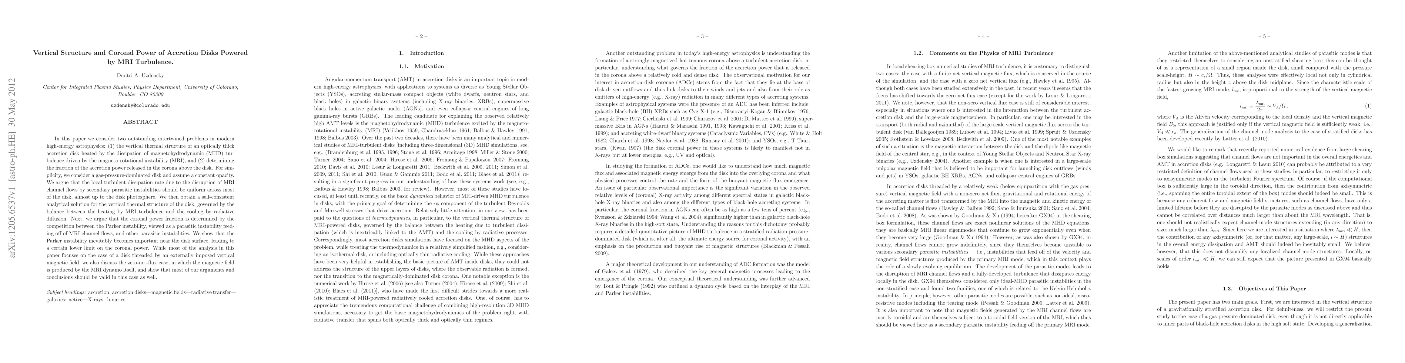 This paper investigates the vertical thermal structure of accretion disks heated by MRI-driven turbulence and determines the fraction of accretion power released in the corona. It provides a self-consistent analytical solution for the disk's thermal structure and argues that the coronal power is influenced by the Parker instability and other parasitic instabilities.
