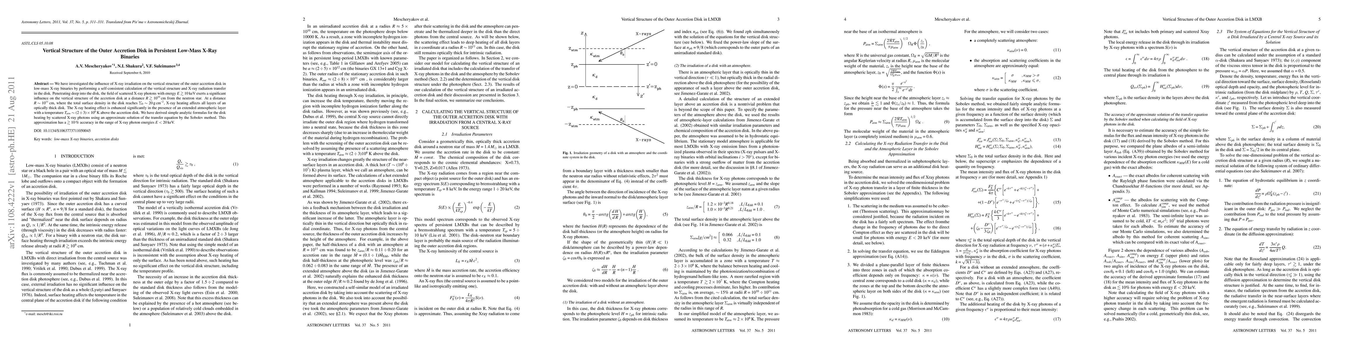 This paper investigates the impact of X-ray irradiation on the vertical structure of the outer accretion disk in low-mass X-ray binaries, finding that scattered X-ray photons significantly influence the disk's vertical structure at distances $R\gtrsim10^{10}$\,cm from the neutron star. The study derives analytic formulas for X-ray heating, showing enhanced effects at $R\sim10^{11}$\,cm in the presence of an extended atmospheric layer.
