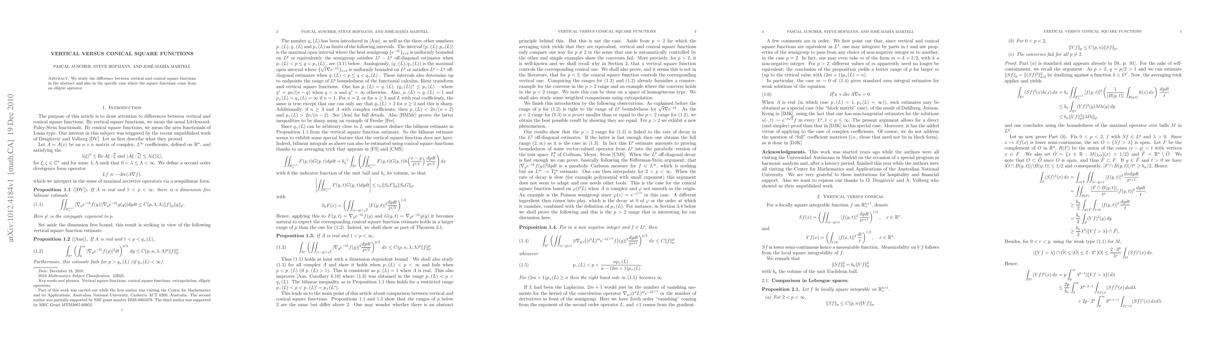 Summary: This paper investigates the distinctions between vertical and conical square functions, both in general and when derived from an elliptic operator, to understand their unique properties and implications.