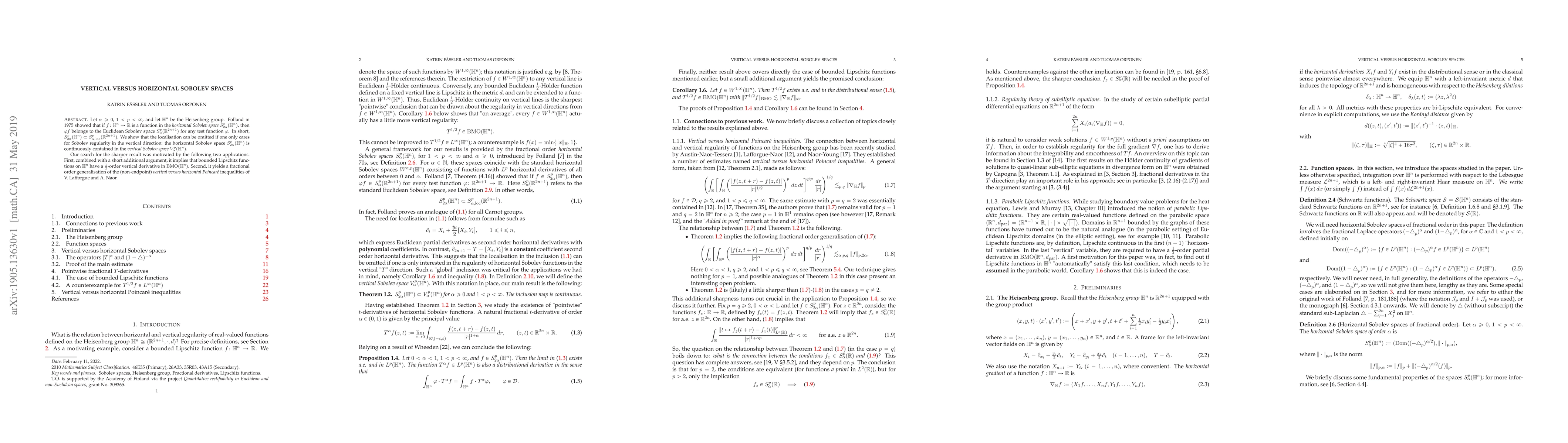 This paper investigates the relationship between vertical and horizontal Sobolev spaces on the Heisenberg group $\mathbb{H}^{n}$. It shows that the horizontal Sobolev space $S_{2\alpha}^{p}(\mathbb{H}^{n})$ is continuously contained in the vertical Sobolev space $V^{p}_{\alpha}(\mathbb{H}^{n})$, and discusses applications including $\tfrac{1}{2}$-order vertical derivatives in $\mathrm{BMO}(\mathbb{H}^{n})$ and a generalization of vertical versus horizontal Poincaré inequalities.