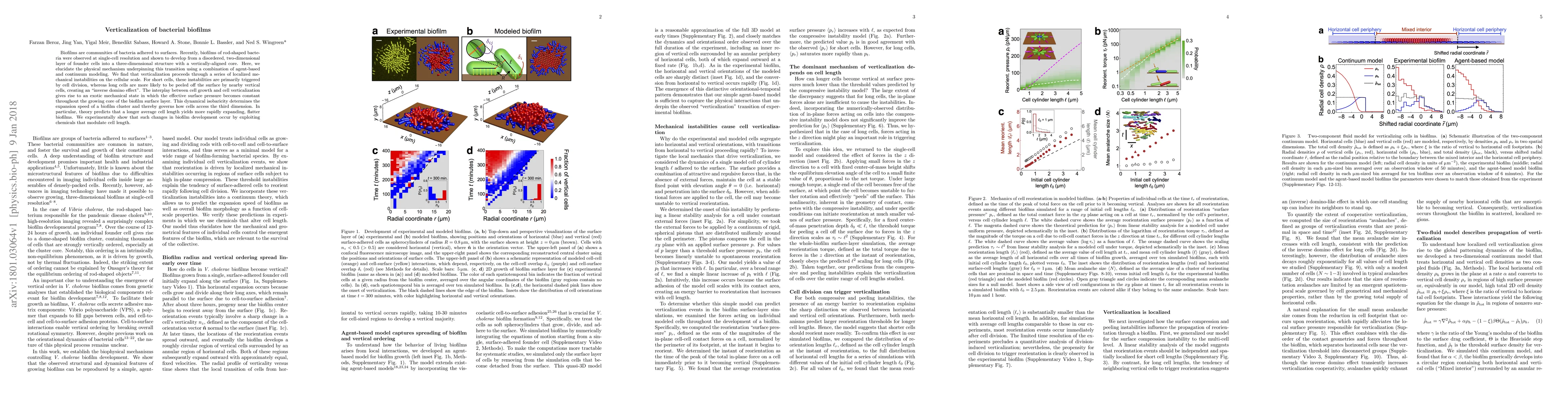 This paper explores the verticalization of rod-shaped bacterial biofilms, revealing that it results from localized mechanical instabilities driven by cell division and interactions. The study combines modeling and experiments to show that longer cells lead to flatter, faster-expanding biofilms due to a dynamical isobaricity.