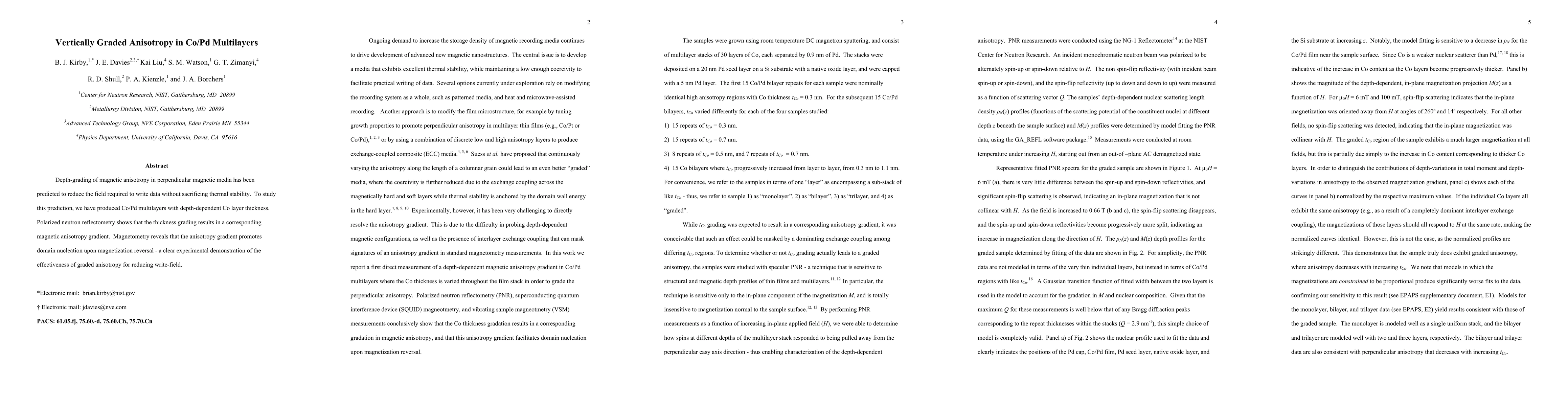 Depth-grading of magnetic anisotropy in perpendicular magnetic media has been predicted to reduce the field required to write data without sacrificing thermal stability. To study this prediction, we have produced Co/Pd multilayers with depth-dependent Co layer thickness. Polarized neutron reflectometry shows that the thickness grading results in a corresponding magnetic anisotropy gradient. Magnetometry reveals that the anisotropy gradient promotes domain nucleation upon magnetization reversal - a clear experimental demonstration of the effectiveness of graded anisotropy for reducing write-field.