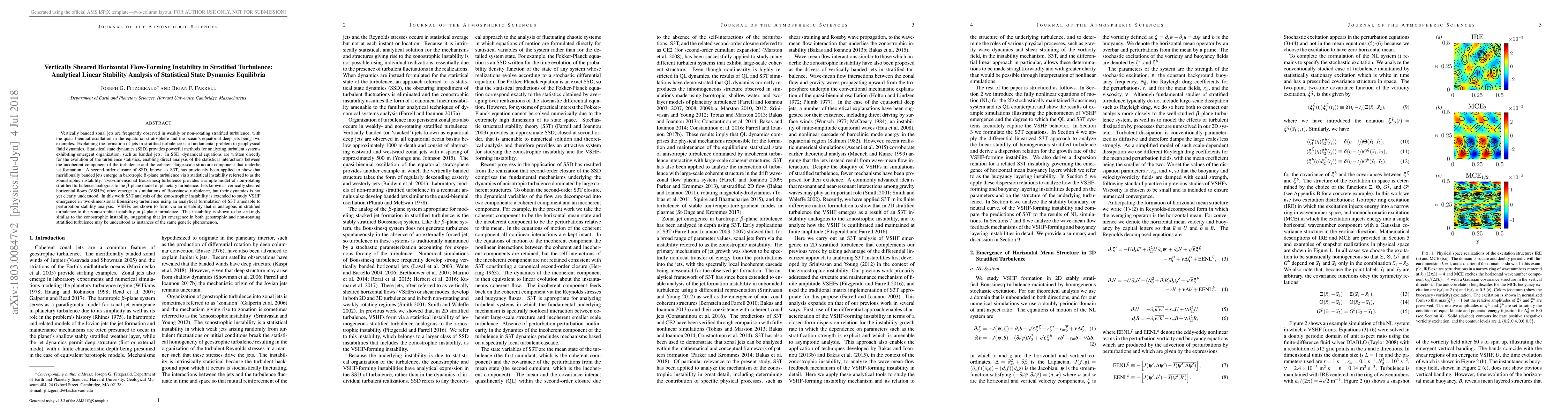 This paper uses analytical linear stability analysis to investigate the formation of vertically sheared horizontal flows (VSHFs) in two-dimensional Boussinesq turbulence, demonstrating that VSHFs emerge via a statistical instability analogous to the zonostrophic instability in beta-plane turbulence, suggesting a unified mechanism for jet formation in both geostrophic and non-rotating stratified turbulence.