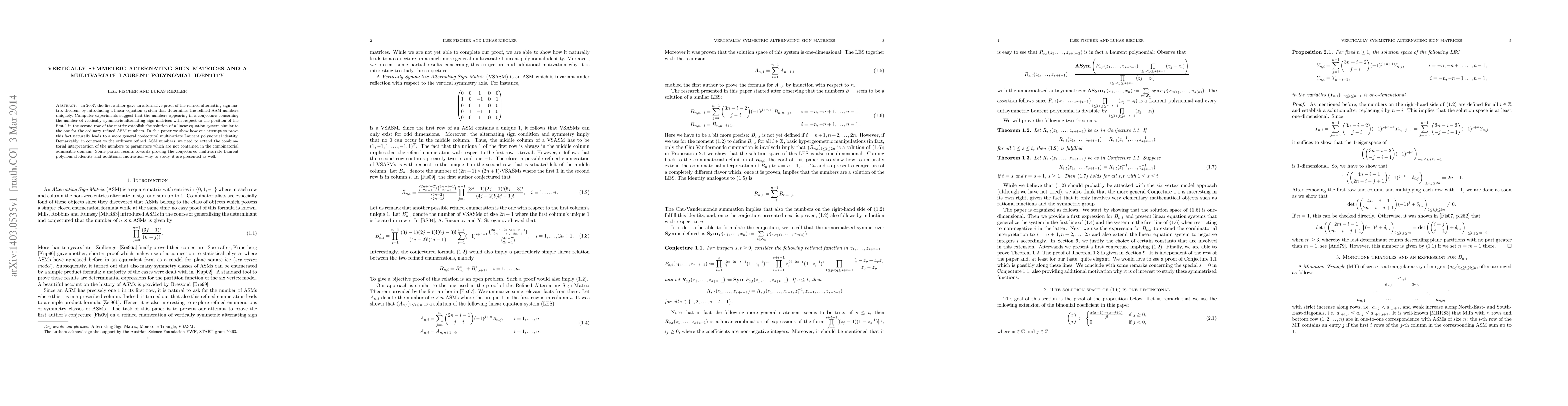 Christoph Koutschan, Ilse Fischer, Roger E. Behrend
