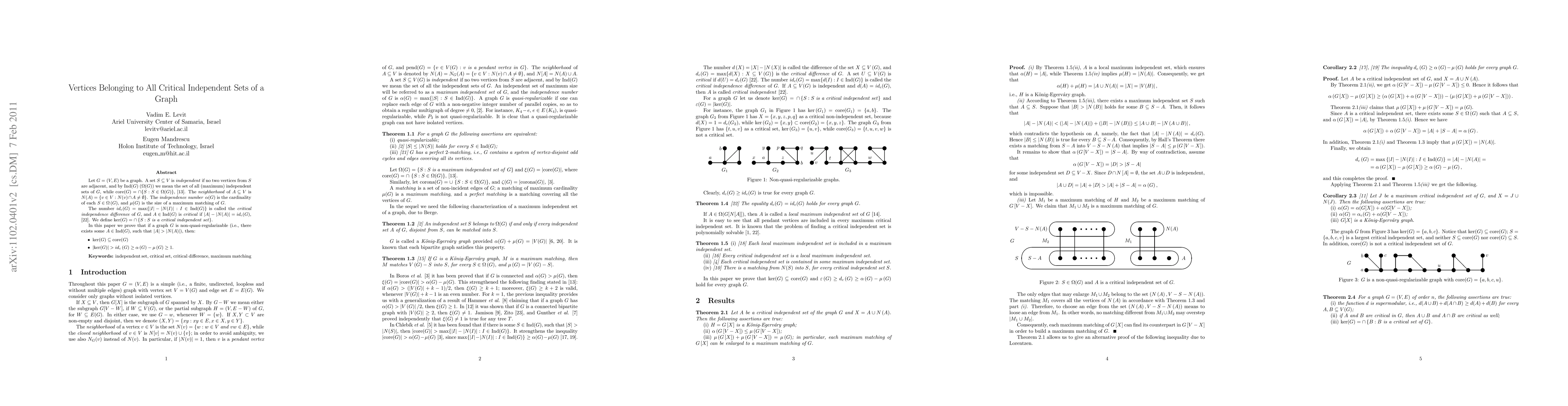 This paper investigates the properties of critical independent sets in graphs, proving that for non-quasi-regularizable graphs, the intersection of all critical independent sets (ker(G)) is a subset of the intersection of all maximum independent sets (core(G)), and that the size of ker(G) exceeds the critical independence difference id_{c}(G).