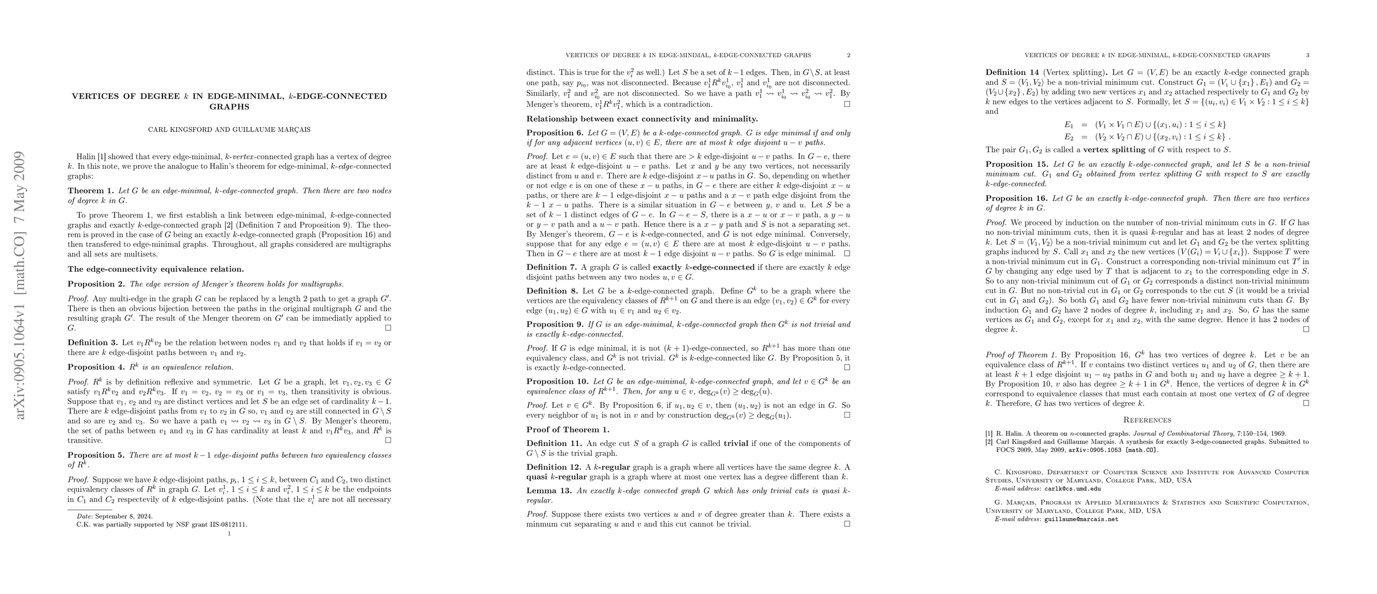 This paper proves that every edge-minimal, k-edge-connected graph contains at least two vertices of degree k, extending Halin's theorem from vertex connectivity to edge connectivity.