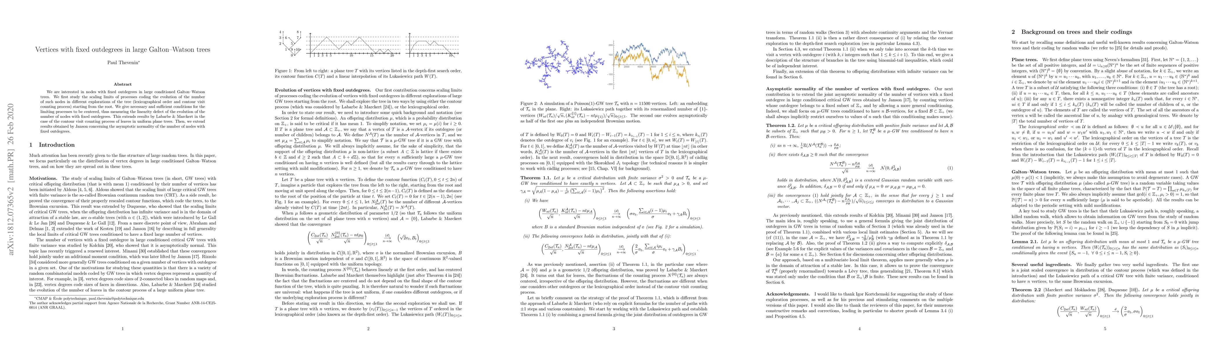 This paper investigates nodes with fixed outdegrees in large Galton-Watson trees, finding necessary and sufficient conditions for the limiting processes to be centered and extending previous results on asymptotic normality.