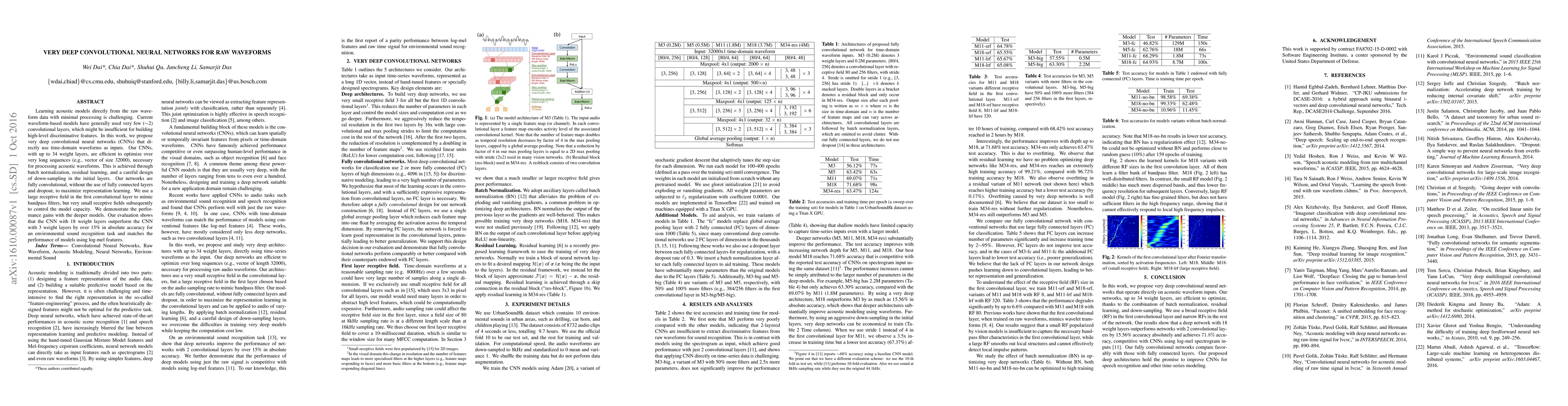 A deep convolutional neural network (CNN) was proposed to operate directly on acoustic waveform inputs.