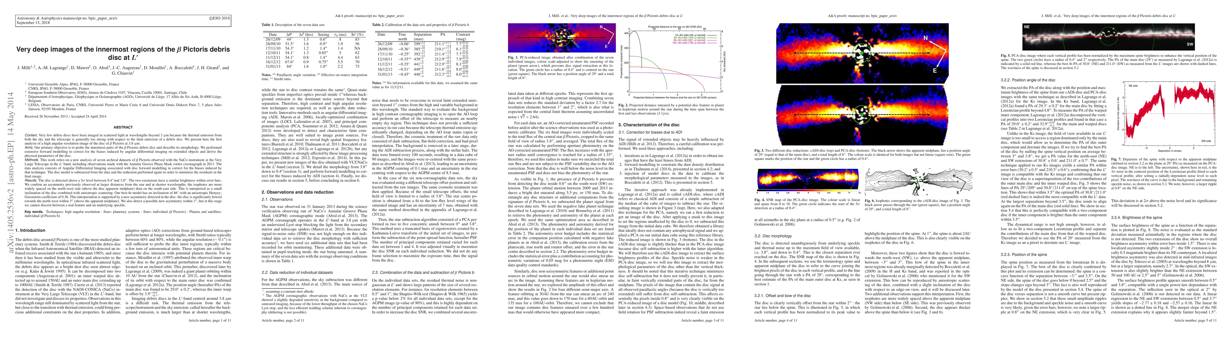 This study presents high angular resolution images of the beta Pictoris debris disc at 3.8 microns, revealing an asymmetry in the disc's morphology and confirming a small inclination combined with anisotropic scattering. The disc shows a significant bowing towards the north-west, suggesting complex physical parameters.