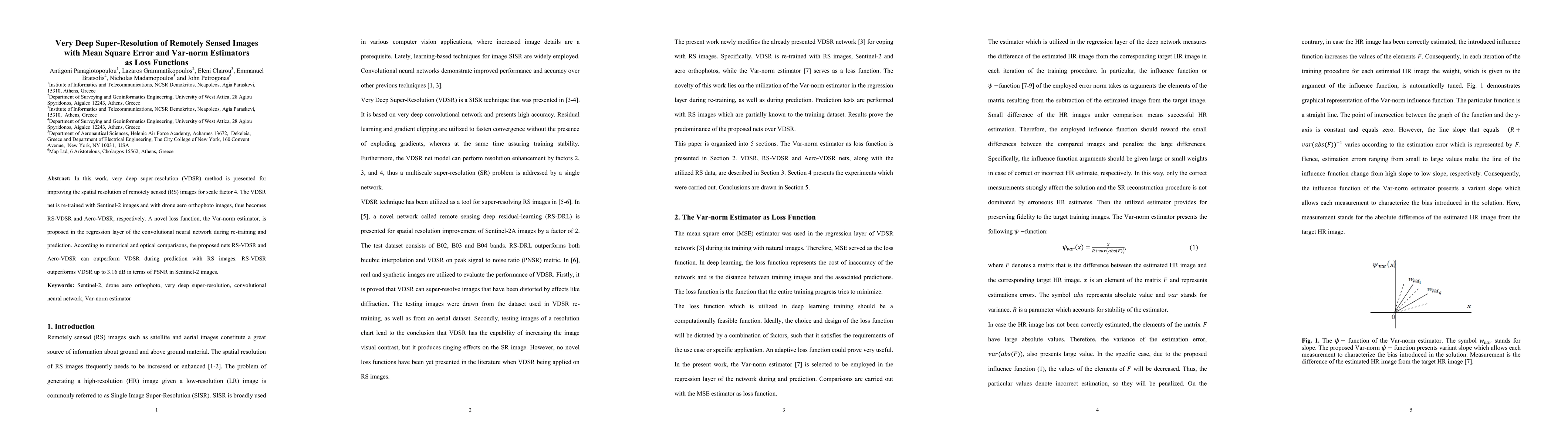 In this work, very deep super-resolution (VDSR) method is presented for improving the spatial resolution of remotely sensed (RS) images for scale factor 4. The VDSR net is re-trained with Sentinel-2 images and with drone aero orthophoto images, thus becomes RS-VDSR and Aero-VDSR, respectively. A novel loss function, the Var-norm estimator, is proposed in the regression layer of the convolutional neural network during re-training and prediction. According to numerical and optical comparisons, the proposed nets RS-VDSR and Aero-VDSR can outperform VDSR during prediction with RS images. RS-VDSR outperforms VDSR up to 3.16 dB in terms of PSNR in Sentinel-2 images.
