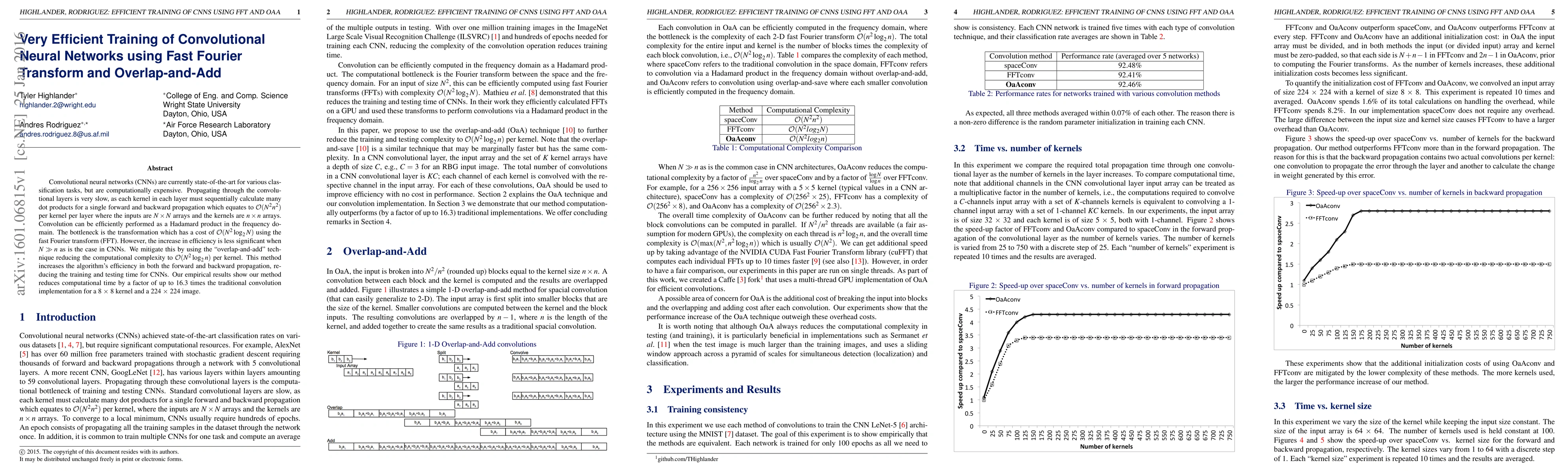 This paper proposes a new method to speed up training of convolutional neural networks by applying Fast Fourier Transform and overlap-and-add technique, reducing computational time by a factor of up to 16.3 times.