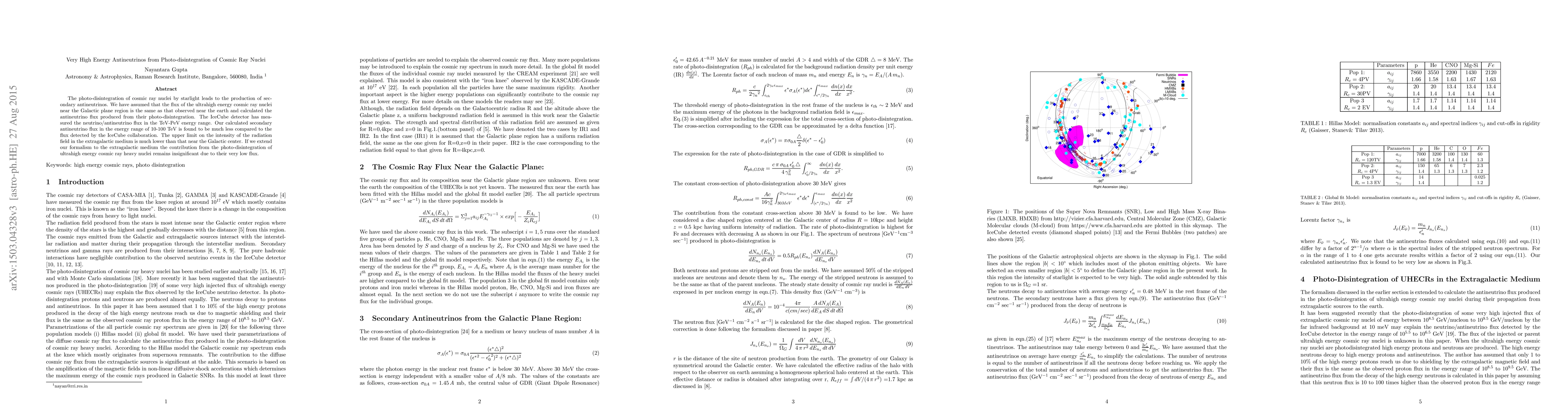 The photo-disintegration of cosmic ray nuclei by starlight leads to the production of secondary antineutrinos. We have assumed that the flux of the ultrahigh energy cosmic ray nuclei near the Galactic plane region is the same as that observed near the earth and calculated the antineutrino flux produced from their photo-disintegration. The IceCube detector has measured the neutrino/antineutrino flux in the TeV-PeV energy range. Our calculated secondary antineutrino flux in the energy range of 10-100 TeV is found to be much less compared to the flux detected by the IceCube collaboration. The upper limit on the intensity of the radiation field in the extragalactic medium is much lower than that near the Galactic center. If we extend our formalism to the extragalactic medium the contribution from the photo-disintegration of ultrahigh energy cosmic ray heavy nuclei remains insignificant due to their very low flux.
