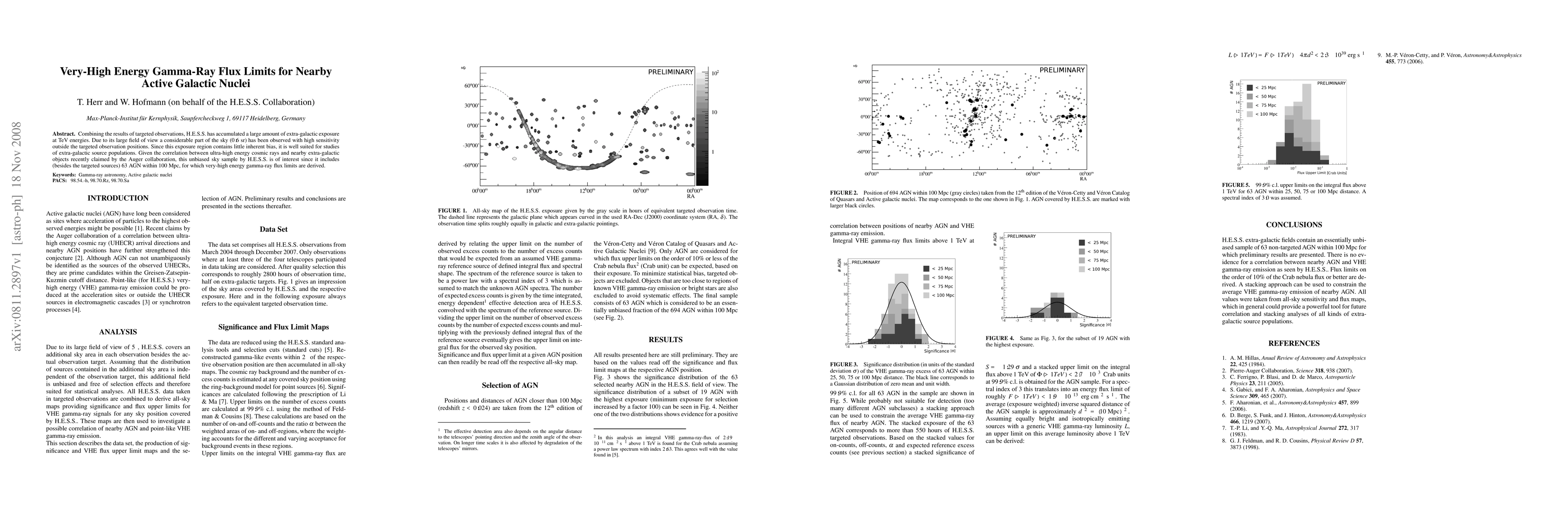 Combining the results of targeted observations, H.E.S.S. has accumulated a large amount of extra-galactic exposure at TeV energies. Due to its large field of view a considerable part of the sky (0.6 sr) has been observed with high sensitivity outside the targeted observation positions. Since this exposure region contains little inherent bias, it is well suited for studies of extra-galactic source populations. Given the correlation between ultra-high energy cosmic rays and nearby extra-galactic objects recently claimed by the Auger collaboration, this unbiased sky sample by H.E.S.S. is of interest since it includes (besides the targeted sources) 63 AGN within 100 Mpc, for which very-high energy gamma-ray flux limits are derived.