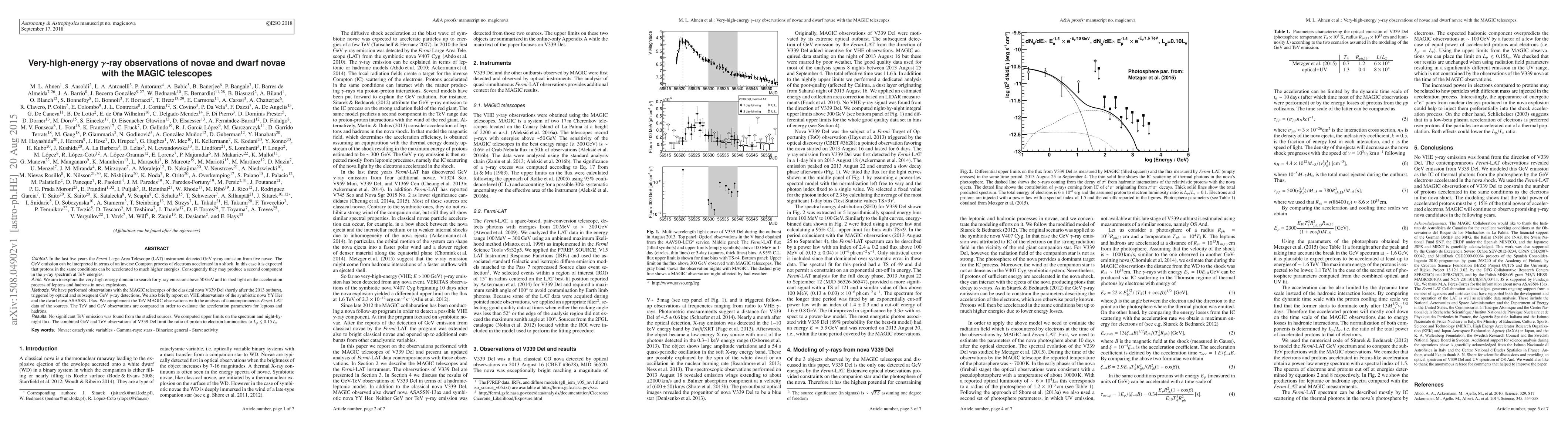 This study used the MAGIC telescopes to search for very-high-energy gamma-ray emission from novae, but found no significant signals, setting limits on particle acceleration processes. The results suggest that proton acceleration in these explosive events is limited compared to electrons.