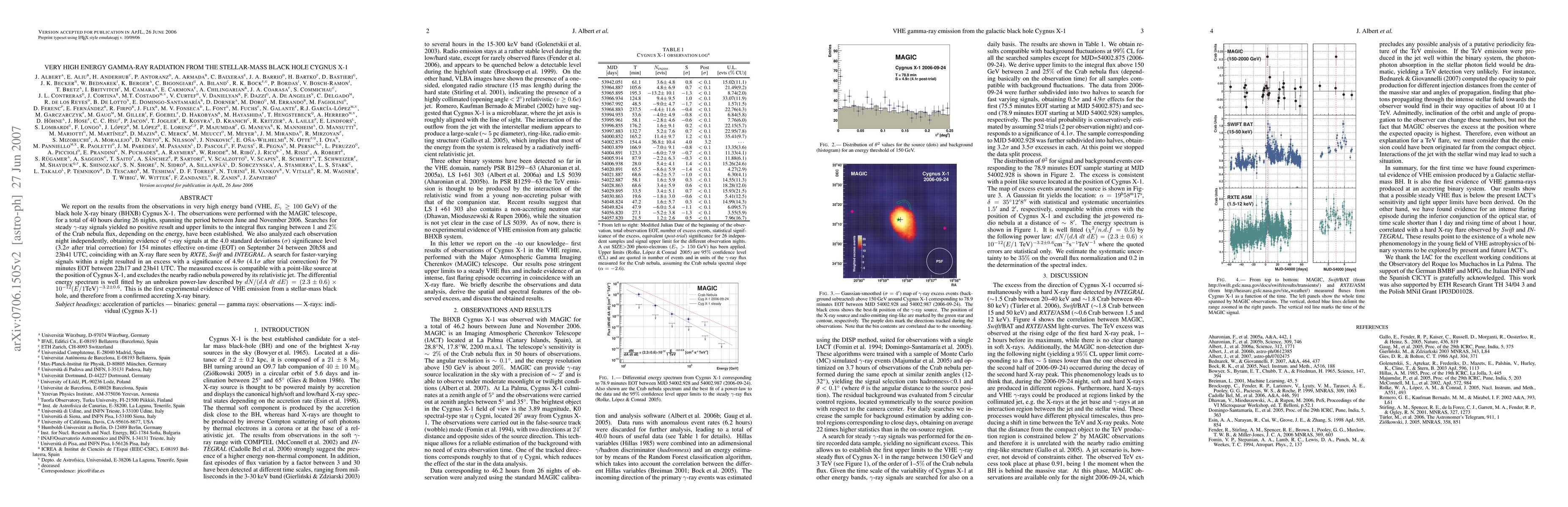 This paper reports on MAGIC telescope observations of Cygnus X-1, a stellar-mass black hole, in the very high energy gamma-ray band. No steady gamma-ray signals were detected, but a transient VHE emission was observed during an X-ray flare, marking the first evidence of VHE radiation from a stellar-mass black hole.