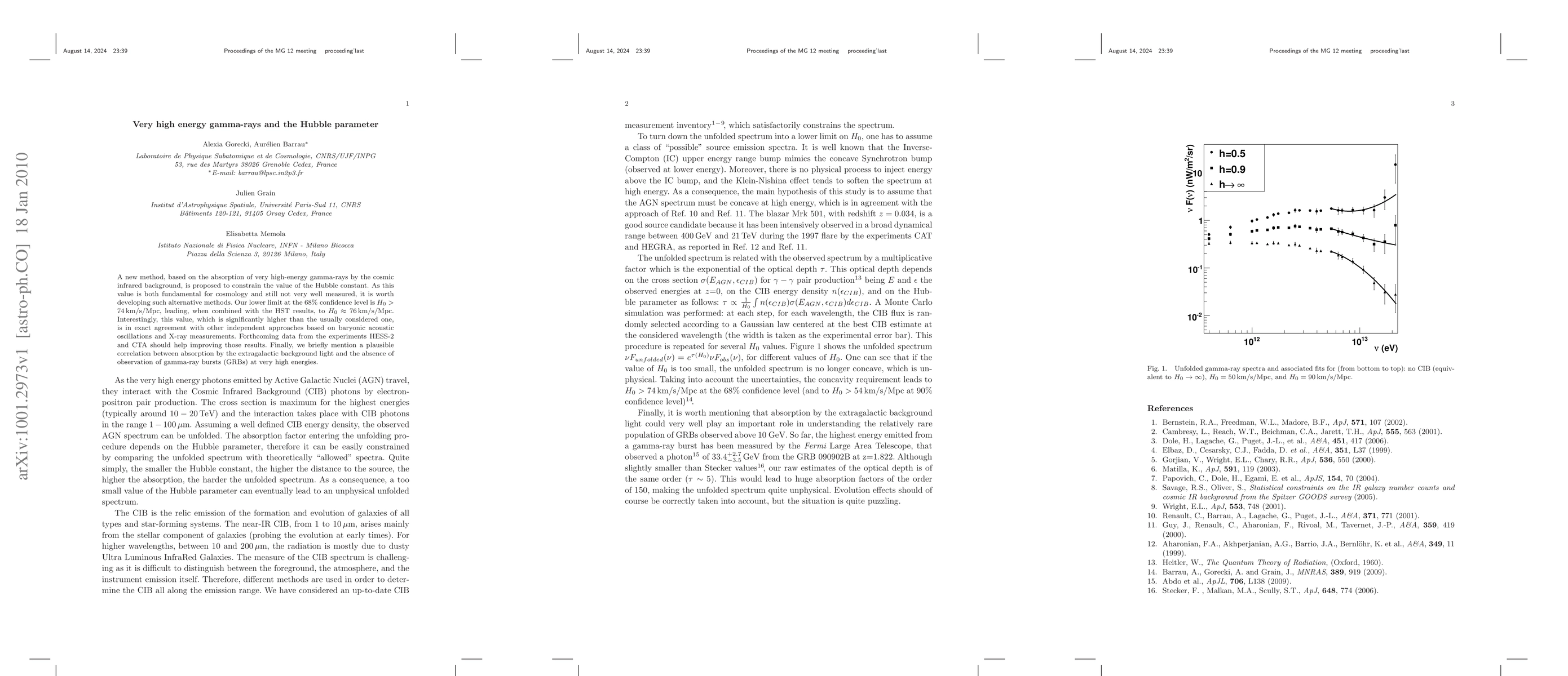 A new method, based on the absorption of very high-energy gamma-rays by the cosmic infrared background, is proposed to constrain the value of the Hubble constant. As this value is both fundamental for cosmology and still not very well measured, it is worth developing such alternative methods. Our lower limit at the 68% confidence level is H0 > 74 km/s/Mpc, leading, when combined with the HST results, to H0 ~ 76 km/s/Mpc. Interestingly, this value, which is significantly higher than the usually considered one, is in exact agreement with other independent approaches based on baryonic acoustic oscillations and X-ray measurements. Forthcoming data from the experiments HESS-2 and CTA should help improving those results. Finally, we briefly mention a plausible correlation between absorption by the extragalactic background light and the absence of observation of gamma-ray bursts (GRBs) at very high energies.