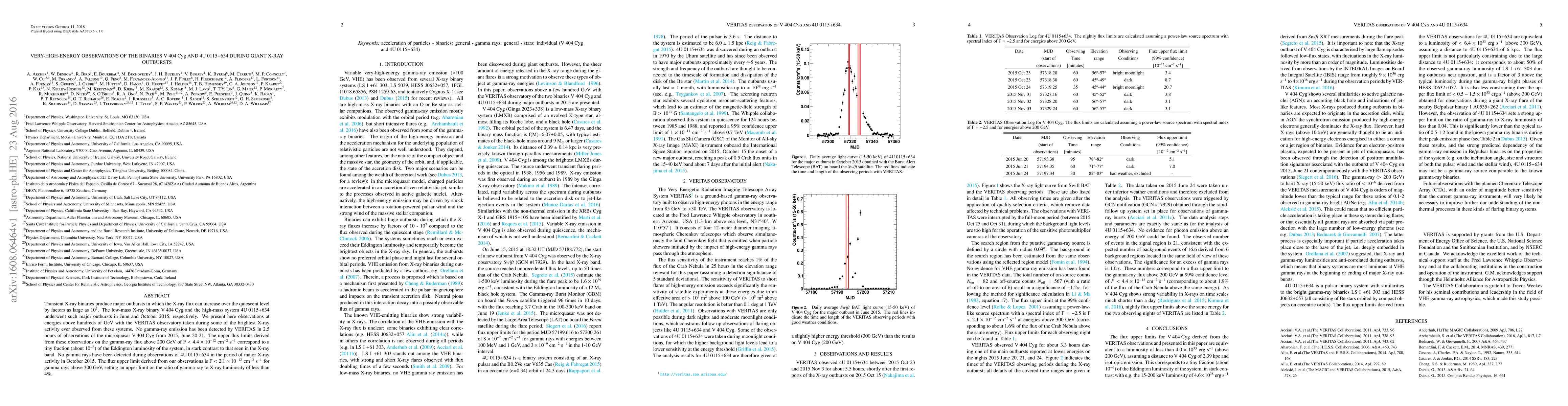Transient X-ray binaries produce major outbursts in which the X-ray flux can increase over the quiescent level by factors as large as $10^7$. The low-mass X-ray binary V 404 Cyg and the high-mass system 4U 0115+634 underwent such major outbursts in June and October 2015, respectively. We present here observations at energies above hundreds of GeV with the VERITAS observatory taken during some of the brightest X-ray activity ever observed from these systems. No gamma-ray emission has been detected by VERITAS in 2.5 hours of observations of the microquasar V 404 Cyg from 2015, June 20-21. The upper flux limits derived from these observations on the gamma-ray flux above 200 GeV of F $< 4.4\times 10^{-12}$ cm$^{-2}$ s$^{-1}$ correspond to a tiny fraction (about $10^{-6}$) of the Eddington luminosity of the system, in stark contrast to that seen in the X-ray band. No gamma rays have been detected during observations of 4U 0115+634 in the period of major X-ray activity in October 2015. The flux upper limit derived from our observations is F $< 2.1\times 10^{-12}$ cm$^{-2}$ s$^{-1}$ for gamma rays above 300 GeV, setting an upper limit on the ratio of gamma-ray to X-ray luminosity of less than 4%.