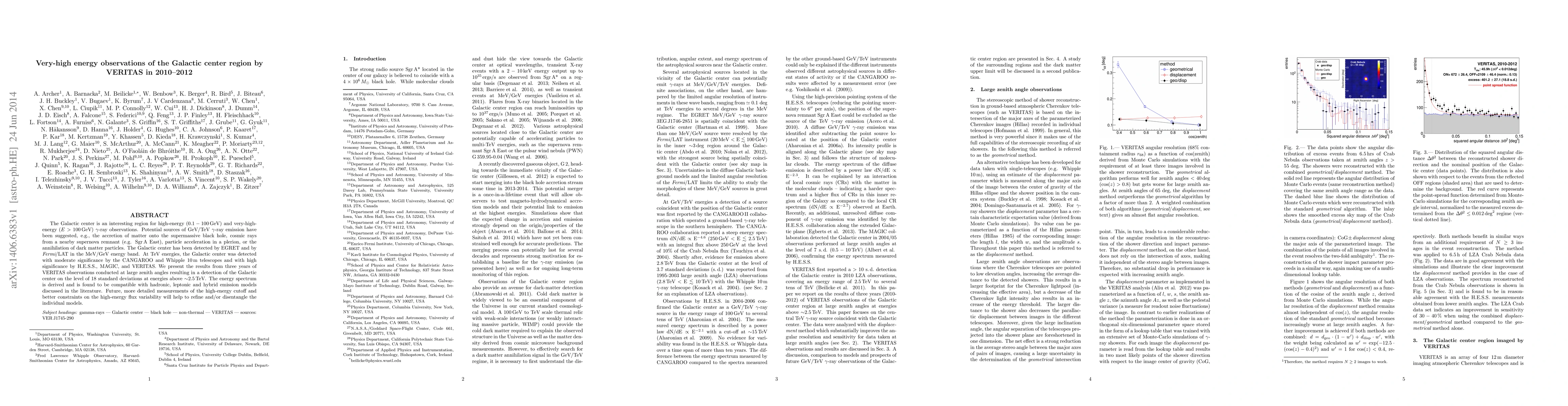 The Galactic center is an interesting region for high-energy (0.1-100 GeV) and very-high-energy (E > 100 GeV) gamma-ray observations. Potential sources of GeV/TeV gamma-ray emission have been suggested, e.g., the accretion of matter onto the supermassive black hole, cosmic rays from a nearby supernova remnant (e.g. SgrA East), particle acceleration in a plerion, or the annihilation of dark matter particles. The Galactic center has been detected by EGRET and by Fermi/LAT in the MeV/GeV energy band. At TeV energies, the Galactic center was detected with moderate significance by the CANGAROO and Whipple 10 m telescopes and with high significance by H.E.S.S., MAGIC, and VERITAS. We present the results from three years of VERITAS observations conducted at large zenith angles resulting in a detection of the Galactic center on the level of 18 standard deviations at energies above ~2.5TeV. The energy spectrum is derived and is found to be compatible with hadronic, leptonic and hybrid emission models discussed in the literature. Future, more detailed measurements of the high-energy cutoff and better constraints on the high-energy flux variability will help to refine and/or disentangle the individual models.