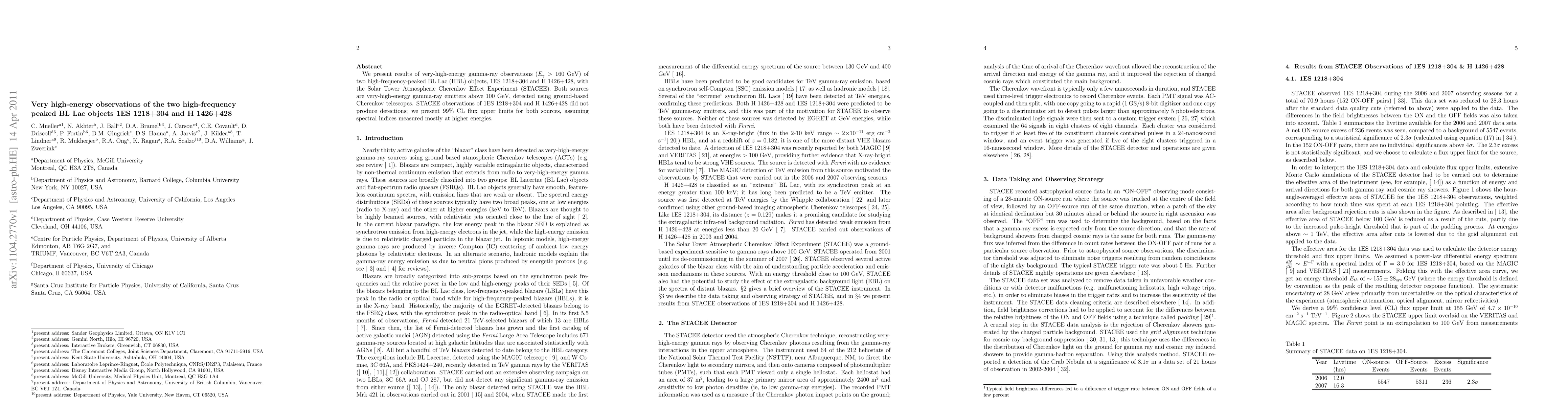 This paper reports on very-high-energy gamma-ray observations of two high-frequency-peaked BL Lac objects (HBLs), 1ES 1218+304 and H 1426+428, using the STACEE experiment. No detections were made, resulting in 99% confidence level flux upper limits for both sources.