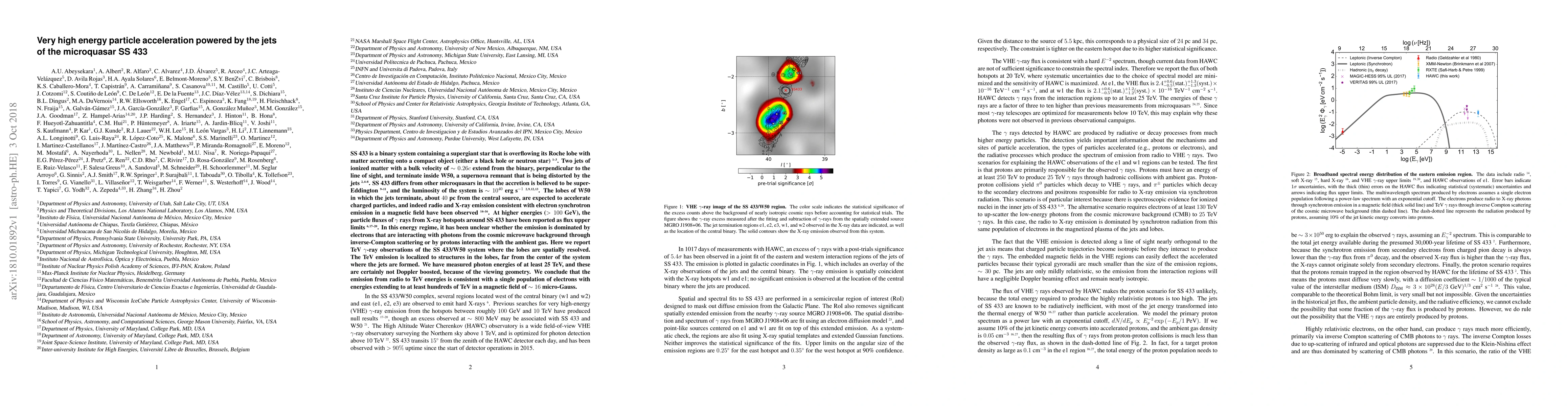 This paper reports TeV gamma-ray observations of the SS 433 microquasar, revealing emission from the lobes of the surrounding supernova remnant W50. The findings suggest that a single population of electrons with energies extending up to hundreds of TeV is responsible for the emission across radio to TeV energies.