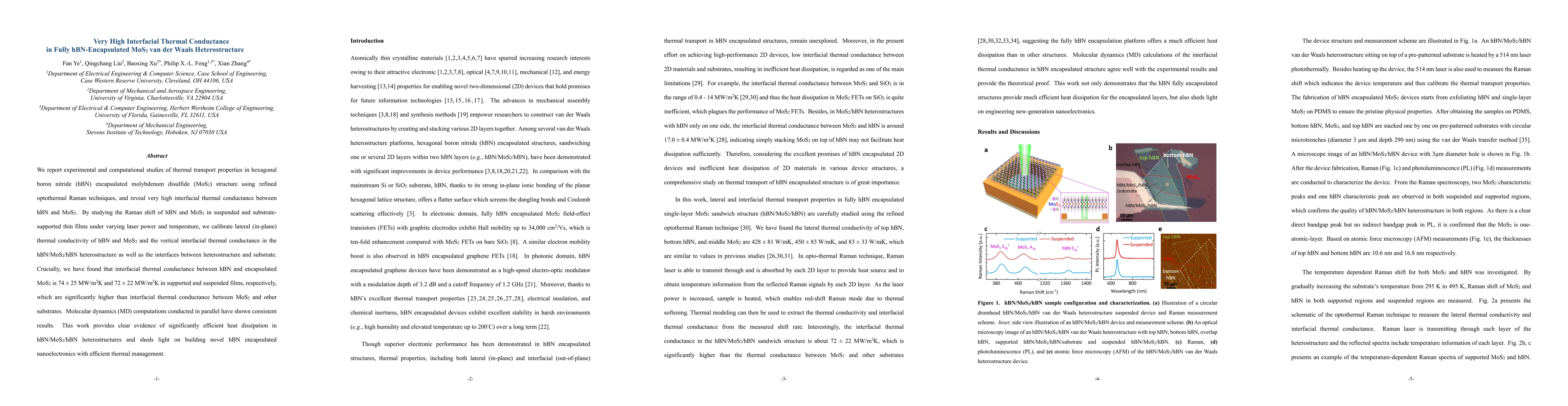 This study reveals very high interfacial thermal conductance between hexagonal boron nitride (hBN) and molybdenum disulfide (MoS2) using optothermal Raman techniques, finding values of 74MW/m²K in supported and 72MW/m²K in suspended films. Computational and experimental results suggest efficient thermal management in hBN-encapsulated MoS2 heterostructures.