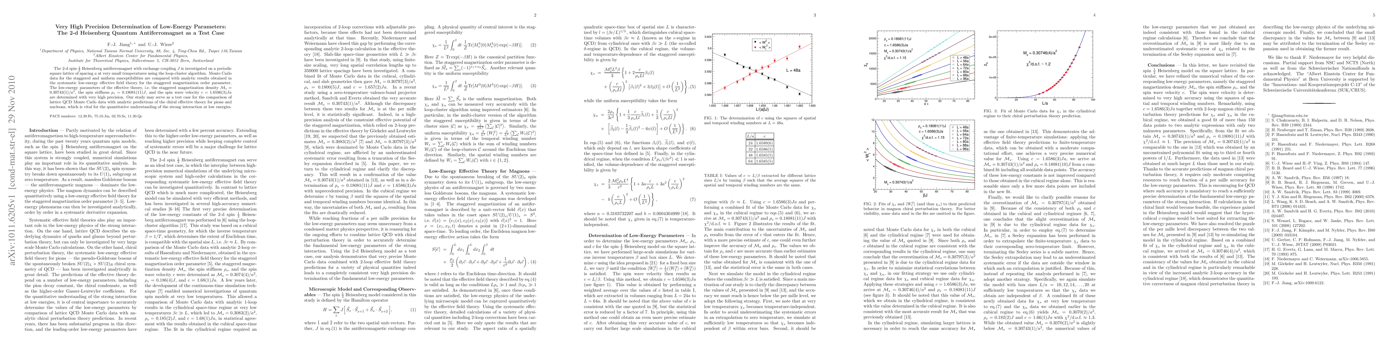 This paper determines the low-energy parameters of the 2-d Heisenberg quantum antiferromagnet with high precision using the loop-cluster algorithm and Monte Carlo simulations. The results provide a benchmark for comparing lattice QCD data with predictions from chiral effective theory.