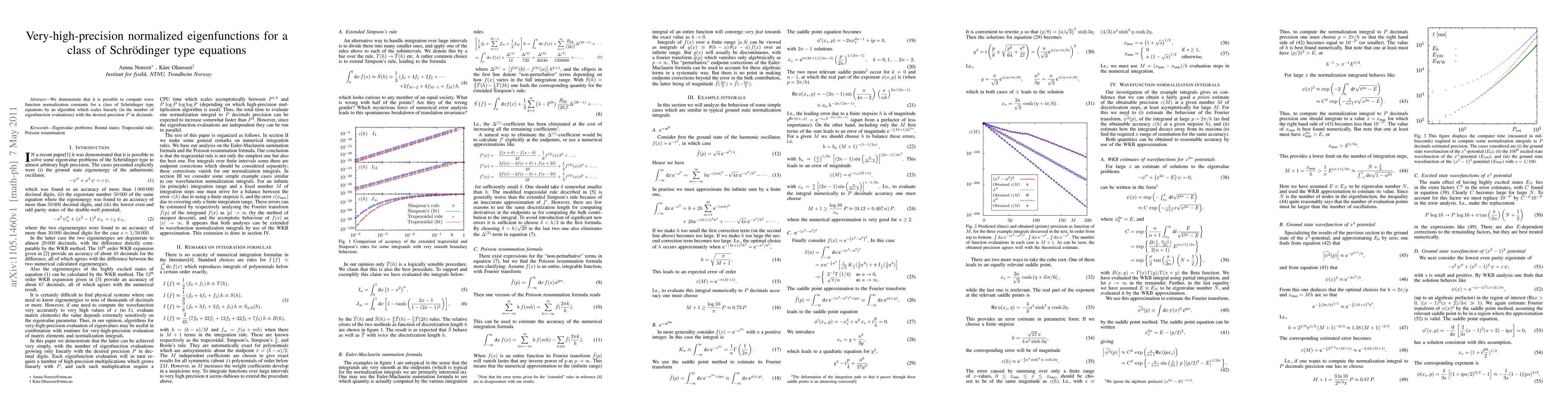We demonstrate that it is possible to compute wave function normalization constants for a class of Schr\"odinger type equations by an algorithm which scales linearly (in the number of eigenfunction evaluations) with the desired precision P in decimals.