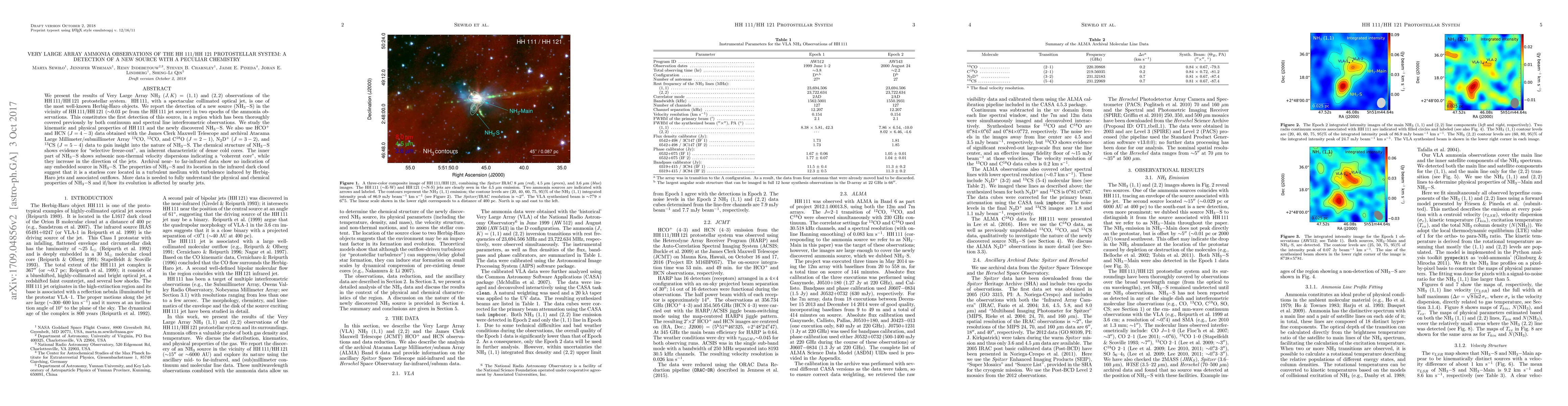 We present the results of Very Large Array NH$_{3}$ $(J,K)=(1,1)$ and $(2,2)$ observations of the HH 111/HH 121 protostellar system. HH 111, with a spectacular collimated optical jet, is one of the most well-known Herbig-Haro objects. We report the detection of a new source (NH$_{3}-$S) in the vicinity of HH 111/HH 121 ($\sim$0.03 pc from the HH 111 jet source) in two epochs of the ammonia observations. This constitutes the first detection of this source, in a region which has been thoroughly covered previously by both continuum and spectral line interferometric observations. We study the kinematic and physical properties of HH 111 and the newly discovered NH$_{3}-$S. We also use HCO$^{+}$ and HCN $(J=4-3)$ data obtained with the James Clerk Maxwell Telescope and archival Atacama Large Millimeter/submillimeter Array $^{13}$CO, $^{12}$CO, and C$^{18}$O $(J=2-1)$, N$_2$D$^{+}$ $(J=3-2)$, and $^{13}$CS $(J=5-4)$ data to gain insight into the nature of NH$_{3}-$S. The chemical structure of NH$_3-$S shows evidence for "selective freeze-out", an inherent characteristic of dense cold cores. The inner part of NH$_3-$S shows subsonic non-thermal velocity dispersions indicating a "coherent core", while they increase in the direction of the jets. Archival near- to far-infrared data show no indication of any embedded source in NH$_3-$S. The properties of NH$_3-$S and its location in the infrared dark cloud suggest that it is a starless core located in a turbulent medium with turbulence induced by Herbig-Haro jets and associated outflows. More data is needed to fully understand the physical and chemical properties of NH$_3-$S and if/how its evolution is affected by nearby jets.