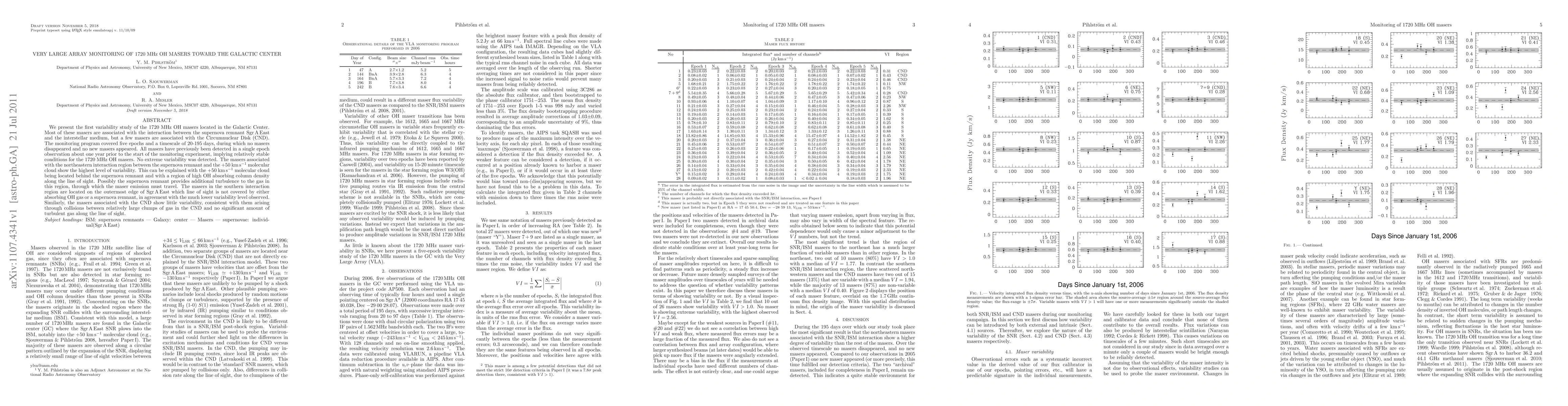 We present the first variability study of the 1720 MHz OH masers located in the Galactic Center. Most of these masers are associated with the interaction between the supernova remnant SgrAEast and the interstellar medium, but a few masers are associated with the Circumnuclear Disk. The monitoring program covered five epochs and a timescale of 20-195 days, during which no masers disappeared and no new masers appeared. All masers have previously been detected in a single epoch observation about one year prior to the start of the monitoring experiment, implying relatively stable conditions for the 1720 MHz OH masers. No extreme variability was detected. The masers associated with the northeastern interaction region between the supernova remnant and the +50km/s molecular cloud show the highest level of variability. This can be explained with the +50km/s molecular cloud being located behind the supernova remnant and with a region of high OH absorbing column density along the line of sight. Possibly the supernova remnant provides additional turbulence to the gas in this region, through which the maser emission must travel. The masers in the southern interaction region are located on the outermost edge of SgrAEast which line of sight is not covered by either absorbing OH gas or a supernova remnant, in agreement with the much lower variability level observed. Similarly, the masers associated with the CND show little variability, consistent with them arising through collisions between relatively large clumps of gas in the CND and no significant amount of turbulent gas along the line of sight.