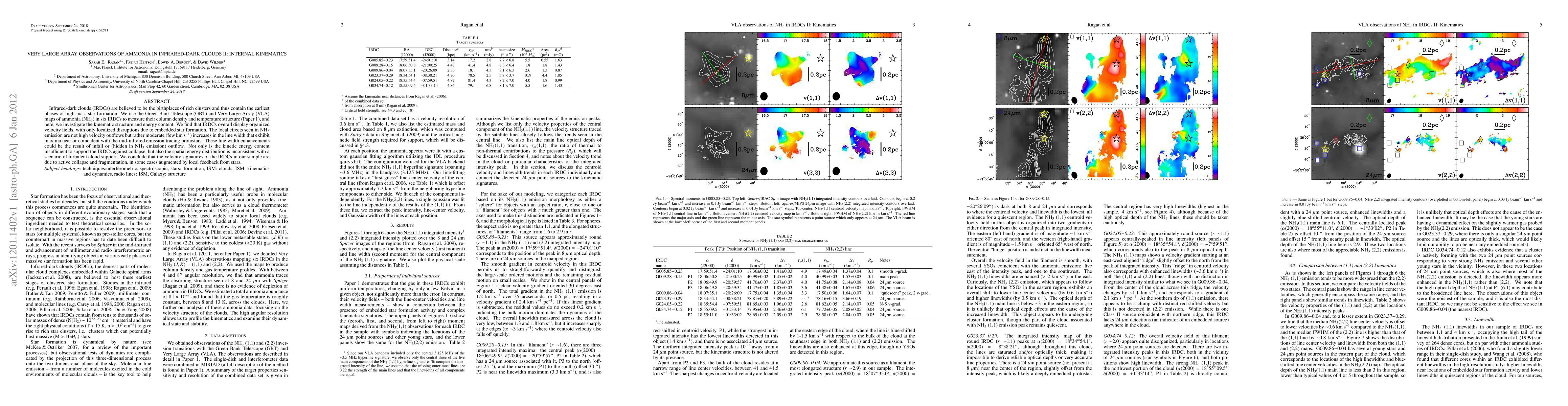 This paper uses VLA observations of ammonia in infrared-dark clouds to investigate their internal kinematics, finding organized velocity fields with localized disruptions from star formation. The study concludes that the clouds' velocity signatures indicate active collapse and fragmentation, rather than turbulent support.