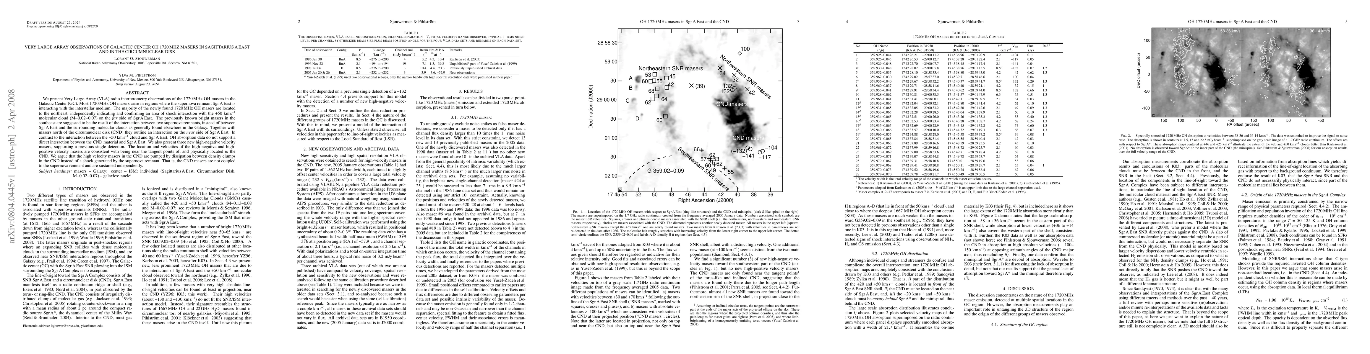 This paper reports VLA observations of 1720 MHz OH masers in the Galactic Center, revealing new masers northeast of Sgr A East indicating shock interaction with the +50 km/s molecular cloud. It suggests that southeast masers result from interactions between two supernova remnants, not with surrounding clouds, and that masers near the circumnuclear disk are pumped by internal CND clump interactions rather than by the supernova remnant.