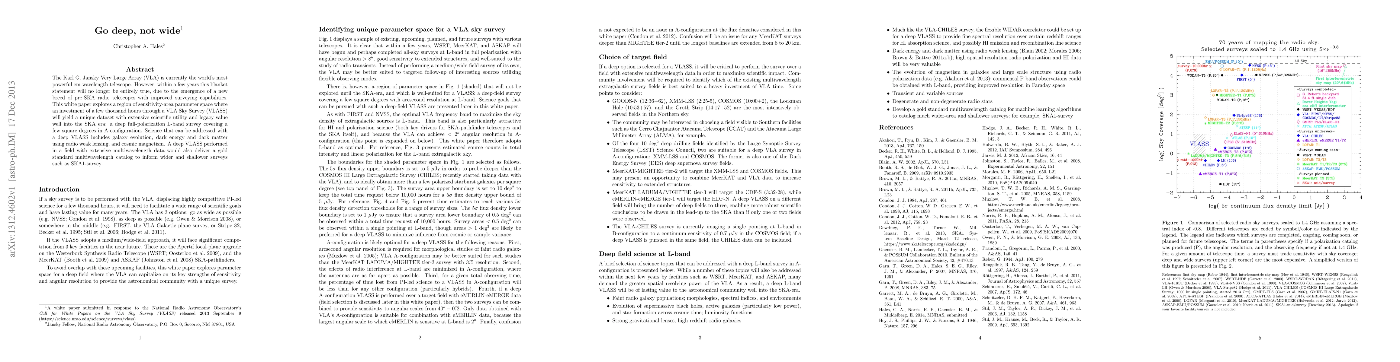 The Karl G. Jansky Very Large Array (VLA) is currently the world's most powerful cm-wavelength telescope. However, within a few years this blanket statement will no longer be entirely true, due to the emergence of a new breed of pre-SKA radio telescopes with improved surveying capabilities. This white paper explores a region of sensitivity-area parameter space where an investment of a few thousand hours through a VLA Sky Survey (VLASS) will yield a unique dataset with extensive scientific utility and legacy value well into the SKA era: a deep full-polarization L-band survey covering a few square degrees in A-configuration. Science that can be addressed with a deep VLASS includes galaxy evolution, dark energy and dark matter using radio weak lensing, and cosmic magnetism. A deep VLASS performed in a field with extensive multiwavelength data would also deliver a gold standard multiwavelength catalog to inform wider and shallower surveys such as SKA1-survey.