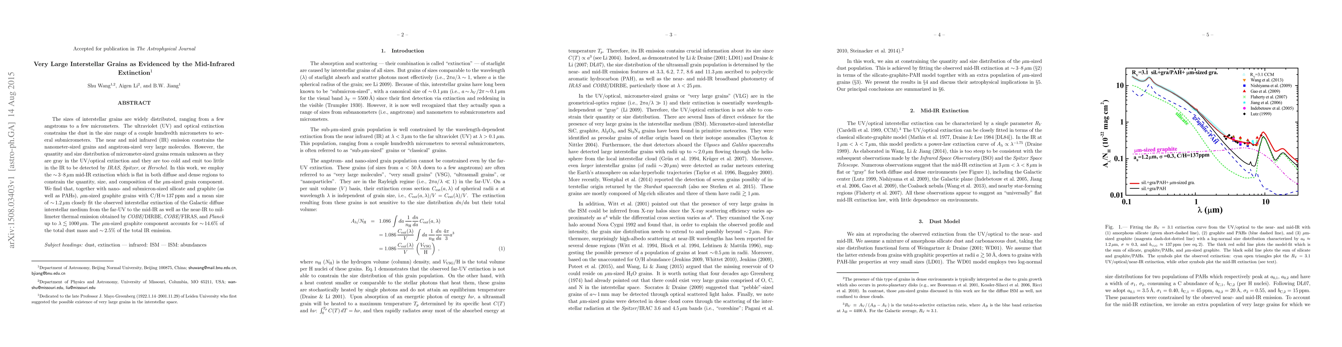 The sizes of interstellar grains are widely distributed, ranging from a few angstroms to a few micrometers. The ultraviolet (UV) and optical extinction constrains the dust in the size range of a couple hundredth micrometers to several submicrometers. The near and mid infrared (IR) emission constrains the nanometer-sized grains and angstrom-sized very large molecules. However, the quantity and size distribution of micrometer-sized grains remain unknown as they are gray in the UV/optical extinction and they are too cold and emit too little in the IR to be detected by IRAS, Spitzer, or Herschel. In this work, we employ the ~3-8 micron mid-IR extinction which is flat in both diffuse and dense regions to constrain the quantity, size, and composition of the micron-sized grain component. We find that, together with nano- and submicron-sized silicate and graphite (as well as PAHs), micron-sized graphite grains with C/H=137 ppm and a mean size of ~1.2 micron closely fit the observed interstellar extinction of the Galactic diffuse interstellar medium from the far-UV to the mid-IR as well as the near-IR to millimeter thermal emission obtained by COBE/DIRBE, COBE/FIRAS, and Planck up to lambda < 1000 micron. The micron-sized graphite component accounts for ~14.6% of the total dust mass and ~2.5% of the total IR emission.