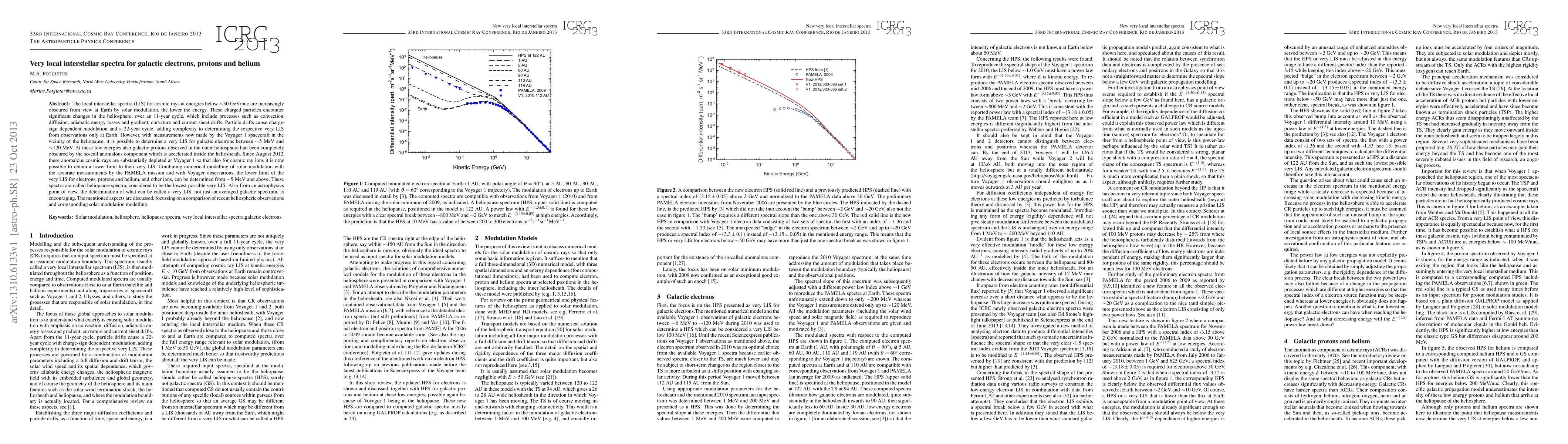 This paper determines the very local interstellar spectra (LIS) for galactic electrons, protons, and helium ions, using Voyager 1 measurements near the heliopause and PAMELA mission data. It reveals that solar modulation effects obscure these spectra at lower energies, but now allows for the derivation of their heliopause spectra, offering a more precise galactic cosmic ray spectrum.