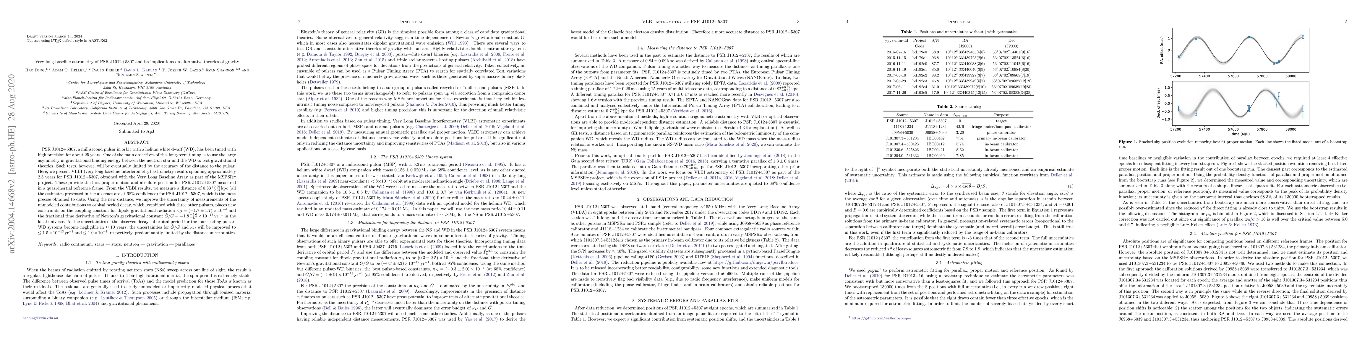 This research uses Very Long Baseline Interferometry (VLBI) to precisely measure the position and distance of PSR J1012+5307, a pulsar orbiting a white dwarf. The new distance measurement, 0.83 kpc, is the most accurate to date. This improvement allows for better constraints on alternative gravity theories, estimating the dipole gravitational radiation coupling constant as -1.7±1.7×10^-4 and the time derivative of Newton's gravitational constant as -1.8×10^-13±4.7×10^-13 yr^-1. Future improvements in distance accuracy will further refine these constraints.