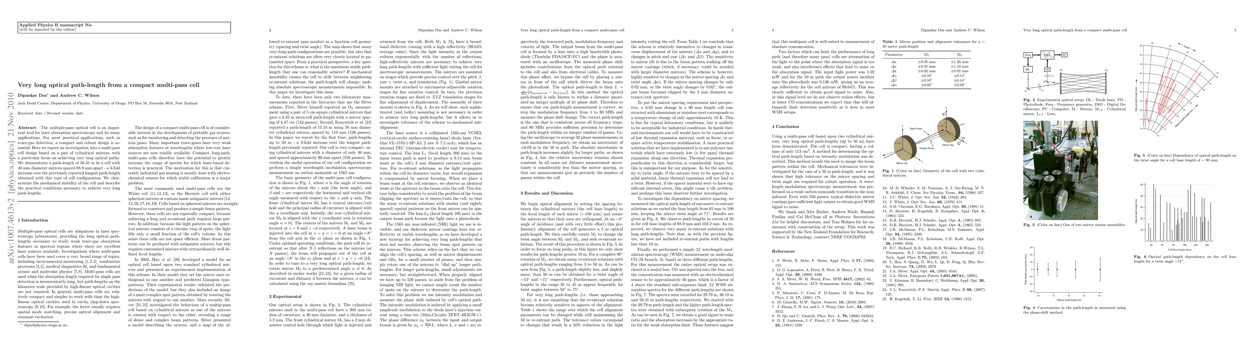 This paper presents a compact multi-pass optical cell design using cylindrical mirrors, achieving a 50.31 m optical path-length in a cell with 40 mm diameter mirrors, representing a threefold increase over previous records. The study also details the mechanical stability and practical conditions required for such long path-lengths.