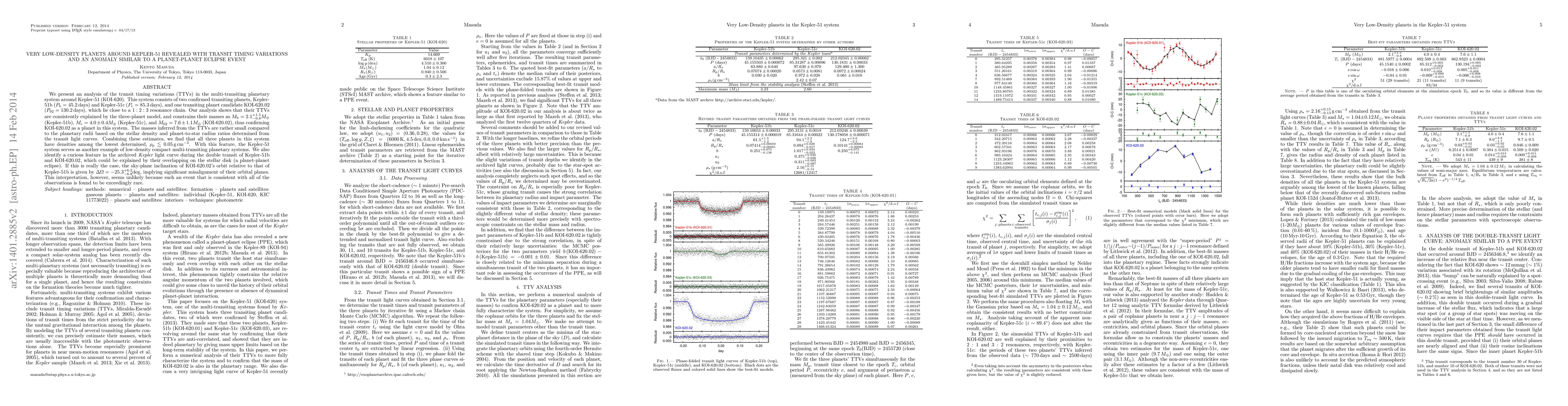 This paper analyzes transit timing variations in the Kepler-51 system, confirming the existence of three low-density planets with masses and radii indicating densities as low as 0.05 g cm$^{-3}$. An anomaly resembling a planet-planet eclipse suggests significant orbital plane misalignment, though this is deemed unlikely due to its rarity.