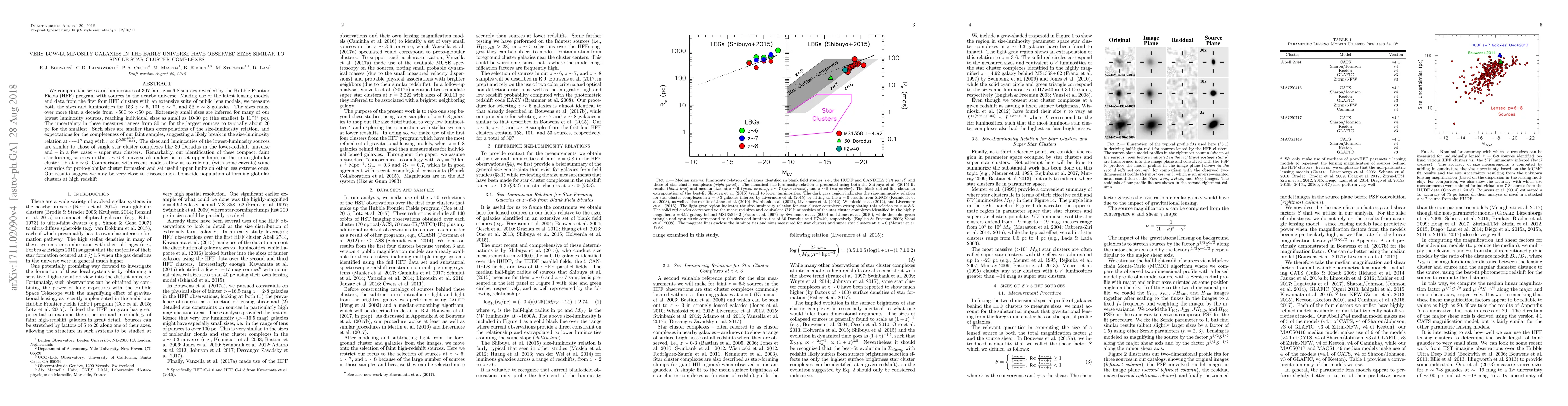 We compare the sizes and luminosities of 307 faint z=6-8 sources revealed by the Hubble Frontier Fields (HFF) program with sources in the nearby universe. Making use of the latest lensing models and data from the first four HFF clusters with an extensive suite of public lens models, we measure both the sizes and luminosities for 153 z~6, 101 z~7, and 53 z~8 galaxies. The sizes range over more than a decade from ~500 to <50 pc. Extremely small sizes are inferred for many of our lowest luminosity sources, reaching individual sizes as small as 10-30 pc (the smallest is 11(-6)(+28) pc). The uncertainty in these measures ranges from 80 pc for the largest sources to typically about 20 pc for the smallest. Such sizes are smaller than extrapolations of the size-luminosity relation, and expectations for the completeness of our faint samples, suggesting a likely break in the size-luminosity relation at ~-17 mag with size proportional to L**(0.50(-0.11)(+0.10)). The sizes and luminosities of the lowest-luminosity sources are similar to those of single star cluster complexes like 30 Doradus in the lower-redshift universe and -- in a few cases -- super star clusters. Remarkably, our identification of these compact, faint star-forming sources in the z~6-8 universe also allow us to set upper limits on the proto-globular cluster LF at z~6. Comparisons with recent models allow us to rule out (with some caveats) some scenarios for proto-globular cluster formation and set useful upper limits on other less extreme ones. Our results suggest we may be very close to discovering a bona-fide population of forming globular clusters at high redshift.