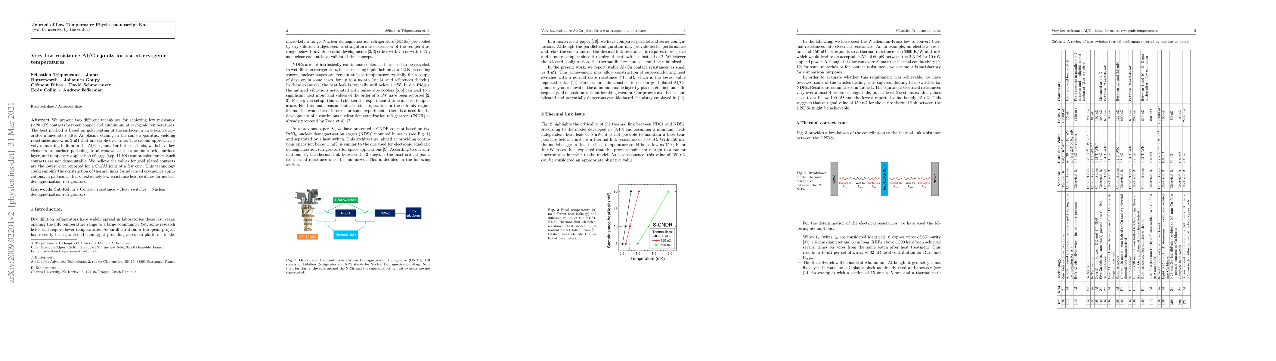 Researchers developed two methods to create ultra-low resistance Al/Cu joints at cryogenic temperatures, achieving resistances as low as 3 nΩ with a new gold plating technique, which could simplify the construction of thermal links for advanced cryogenics applications.